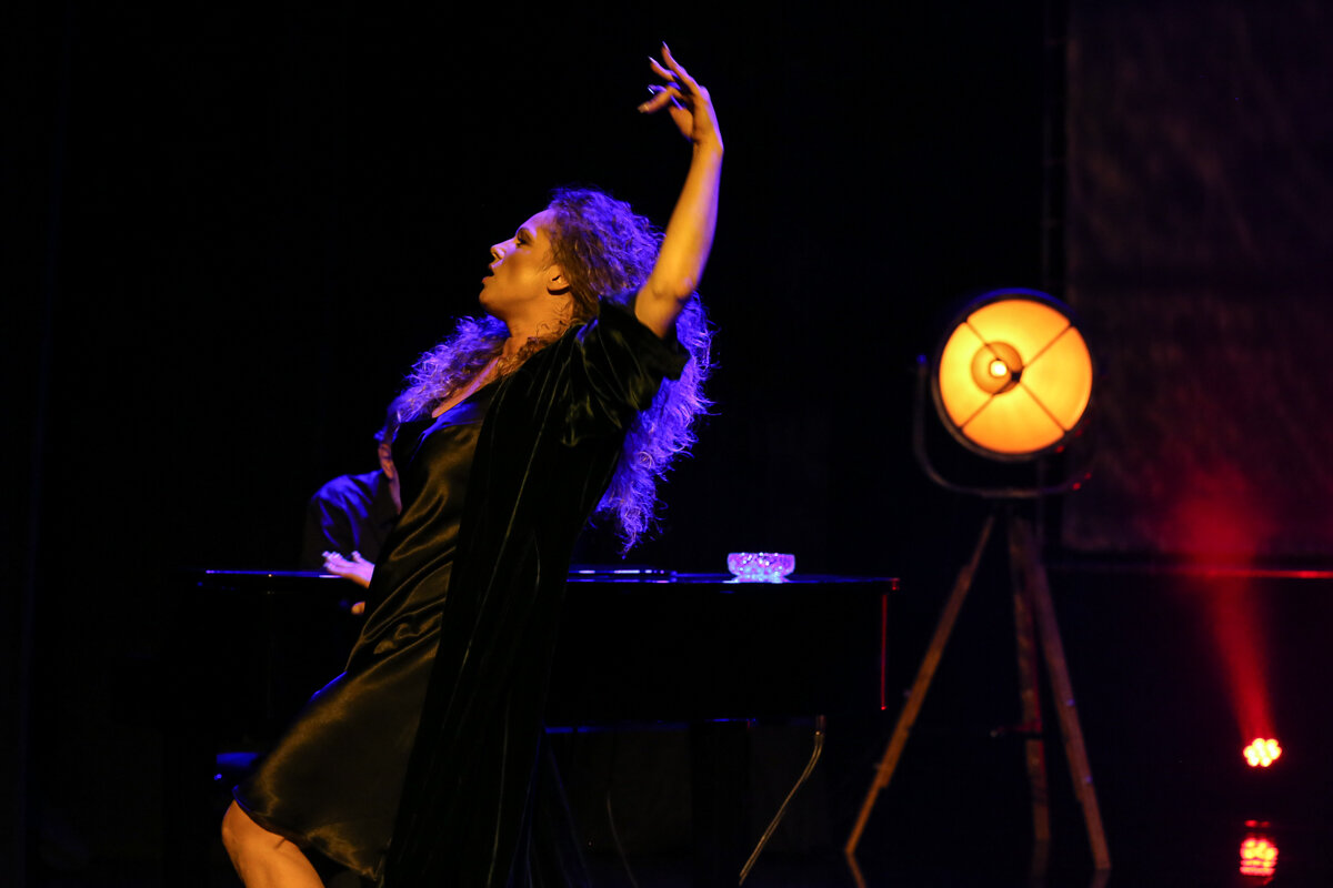 Hedwig Kiesler / Hedy Lamarr, aktorka o mocno zawiłej, bogatej i traumatycznej biografii, która jako pierwsza w roku 1933 pokazała się nago na ekranie filmowym, przez siedem sekund właśnie, by potem zostać również wynalazczynią protez (ale nie tylko), w wykonaniu Liszowskiej stała się przyczynkiem do stworzenia roli bez wątpienia efektownej , choć, powiedzmy od razu, wcale do zagrania niełatwej. Nie da się bowiem zmagań z życiem, czy nagłych wolt emocjonalnych i wewnętrznych rozterek protagonistki, próbującej się odnajdywać w różnie pojmowanych kategoriach dobra i zła, pokazać delikatną czy kruchą kreską. Tak rozwibrowane pasaże charakteru i osobowości, dotykające też aspektów związanych z ostatecznością, wymagają mocniejszego potraktowania używanych środków aktorskich, potrzebnych do pokazania tego, jak różne zjawiska społeczno-klasowe otaczającego świata, w tym totalitaryzm i wojna, a także doświadczenia osobiste, choćby z partnerami i filmowymi producentami, determinowały decyzje podejmowane przez artystkę austriacko-żydowskiego pochodzenia, urodzoną w Wiedniu w roku 1914, a zmarłą w roku 2000 na Florydzie. Liszowska bardzo dobrze radzi sobie ze zmiennością nastrojów, wspaniale nimi żongluje, nigdy nie gubi sensu wypowiedzi i nie zapomina o nasycaniu każdej kwestii sceniczną prawdą. I ta organiczność , godna szacunku, bardzo dobrze wpływa na jasność narracyjną i rytm samego spektaklu, w którym groteska mierzy się niekiedy z patosem, małość z heroizmem, a gorycz z radością.
