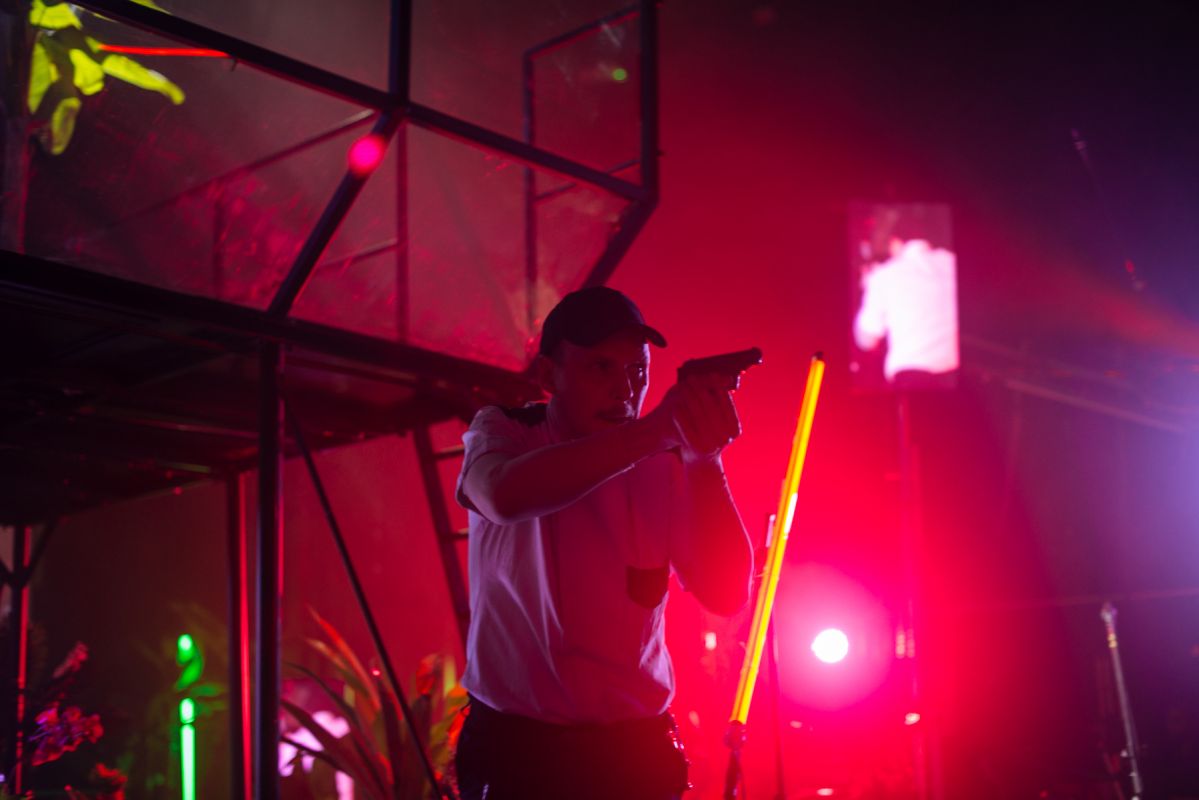 Kamerowanie na żywo, uzupełniane z rzadka o filmy z offu, zwielokrotniało obraz, który pojawiał się w zbliżeniach i z różnych perspektyw na wielkim ekranie i licznych monitorach. W dodatku postaci odbijały się na tworzących swego rodzaju lustra blaszanych czy foliowych powierzchniach z tyłu sceny. Wizualnie dawało to chwilami nawet efekt pewnego nadmiaru, który po przerwie nieco tylko ustąpił, bardziej nawet z uwagi na zmianę klimatu przedstawienia na nieco bardziej wyciszony i refleksyjny, niż za sprawą rezygnacji z technologicznych suplementów.