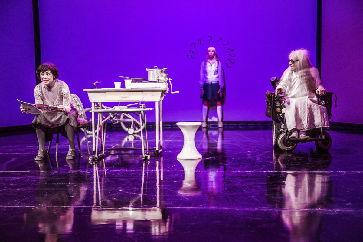 Niektóre sceny działy się na drugim planie – na podświetlanym od tyłu ekranie pojawiały się cienie aktorów, ustawionych w określonych pozach. Ten zabieg, nawiązujący do teatru cieni, z jego odrealnieniem i dramatyzmem, zacierał granicę pomiędzy realizmem a iluzją sytuacji. Poruszające się zarysy sylwetek ludzkich, odbijające się na ekranie, dawały wrażenie dystansu, jakby osoby z „tamtej” części pochodziły z innej bajki.