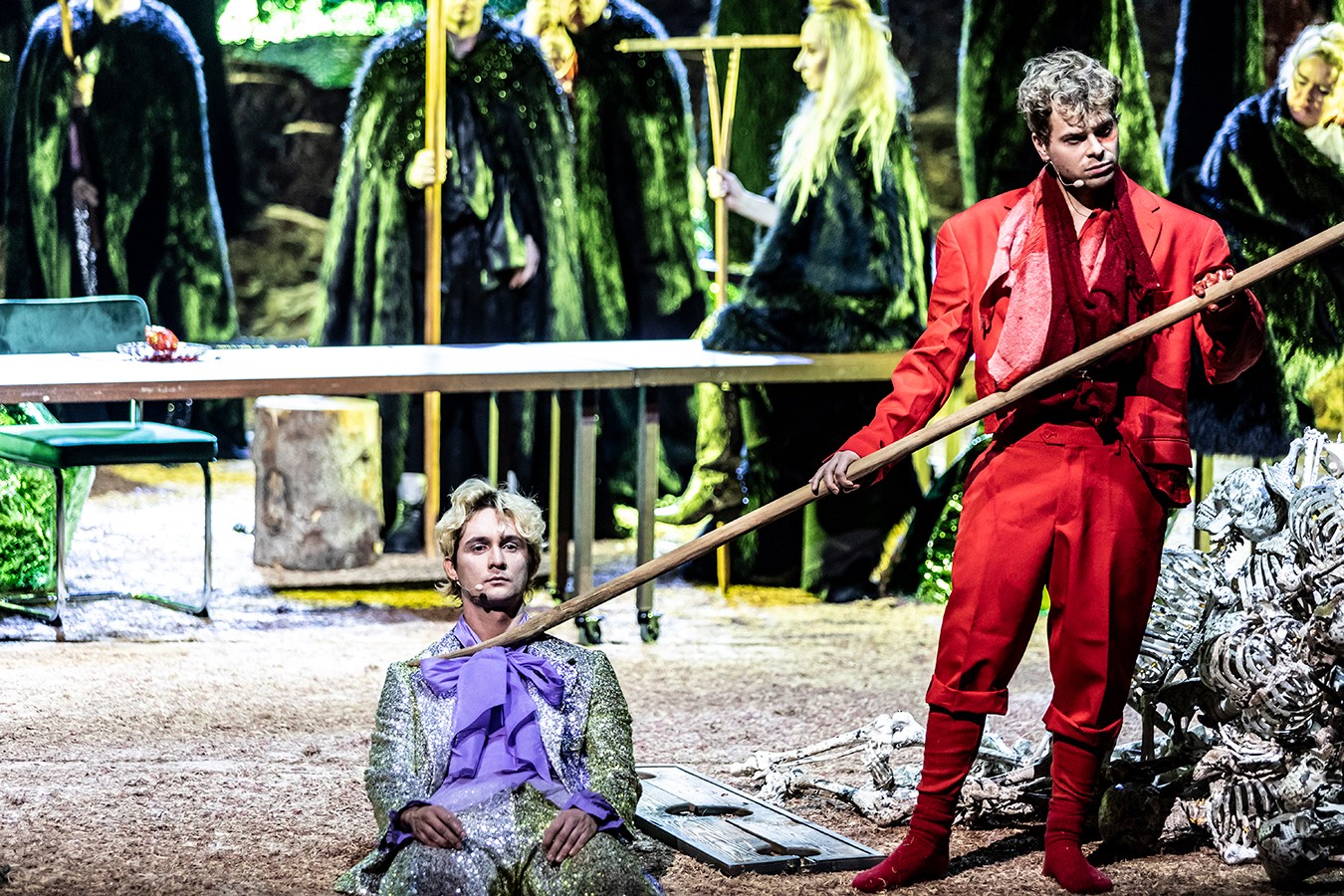 A tu na scenie – rzec można – „sodomia i gomoria”: wulgaryzmy, ciut golizny i dzikiego seksu, nonszalanckie traktowanie symboli, a przez to i uczuć religijnych, szydera z hasła „Tu jest Polska!” i prawienie o przestrzeganiu Konstytucji. Ludowcy też mogą czuć dyskomfort (europoseł ludowców zasiadał na premierze w pierwszym rzędzie), bo chłopi przedstawieni są tu jako przygłupawa, rozerotyzowana tłuszcza, która w finale okazuje się także niebezpieczna i bezwzględna. Skąd chłopi? Ano stąd, że głównym bohaterem tej opowieści jest zgodnie z podtytułem powieści Raka („albo wtóre słowo o Jakóbie Szeli”) przywódca rzezi galicyjskiej z 1846 roku. Opowieść o nim teatralni twórcy podzielili na cztery części: „Chana” (w tej roli Klaudia Janas), w której mowa o odrzuconej przez młodego Szelę miłości dziewczyny; „Malwa” (Anna Antoniewicz), czyli o fascynacji rusałką, której Kóba ofiarowuje serce; „Sława (Joanna Kasperek), od której bohater pobiera nauki zmieniania się, przeobrażania; i wreszcie „Zemsta”, czyli część opowieści odwołująca się wprost do historii z XIX wieku. Generalnie „Baśń…” w kieleckim Żeromskim jest właśnie… baśnią, opowieścią z gatunku fantasy, której świat przedstawiony zaludniają węże, zmory, diabły, lwy i inne tego typu stwory, które wchodzą w rozmaite konotacje z ludźmi. Znakomicie ten świat odtwarzają wszyscy aktorzy kieleckiego teatru prezentujący niesamowitą wręcz perfekcję w scenach zbiorowych i udowadniający, że są silnym zespołem artystycznym. Nie brakuje też okazji do indywidualnych popisów, by wspomnieć choćby Wojciecha Niemczyka w roli Złego Człowieka, Andrzeja Platę jako Kocmołucha, Jacka Mąkę (Stary Myszka) czy Beatę Wojciechowską w epizodycznej roli Agaty. Większość aktorów gra kilka ról, rekordzistki: Ewelina Gronowska, Zuzanna Wierzbińska i Aneta Wirzinkiewicz wcielają się w pięć postaci.
