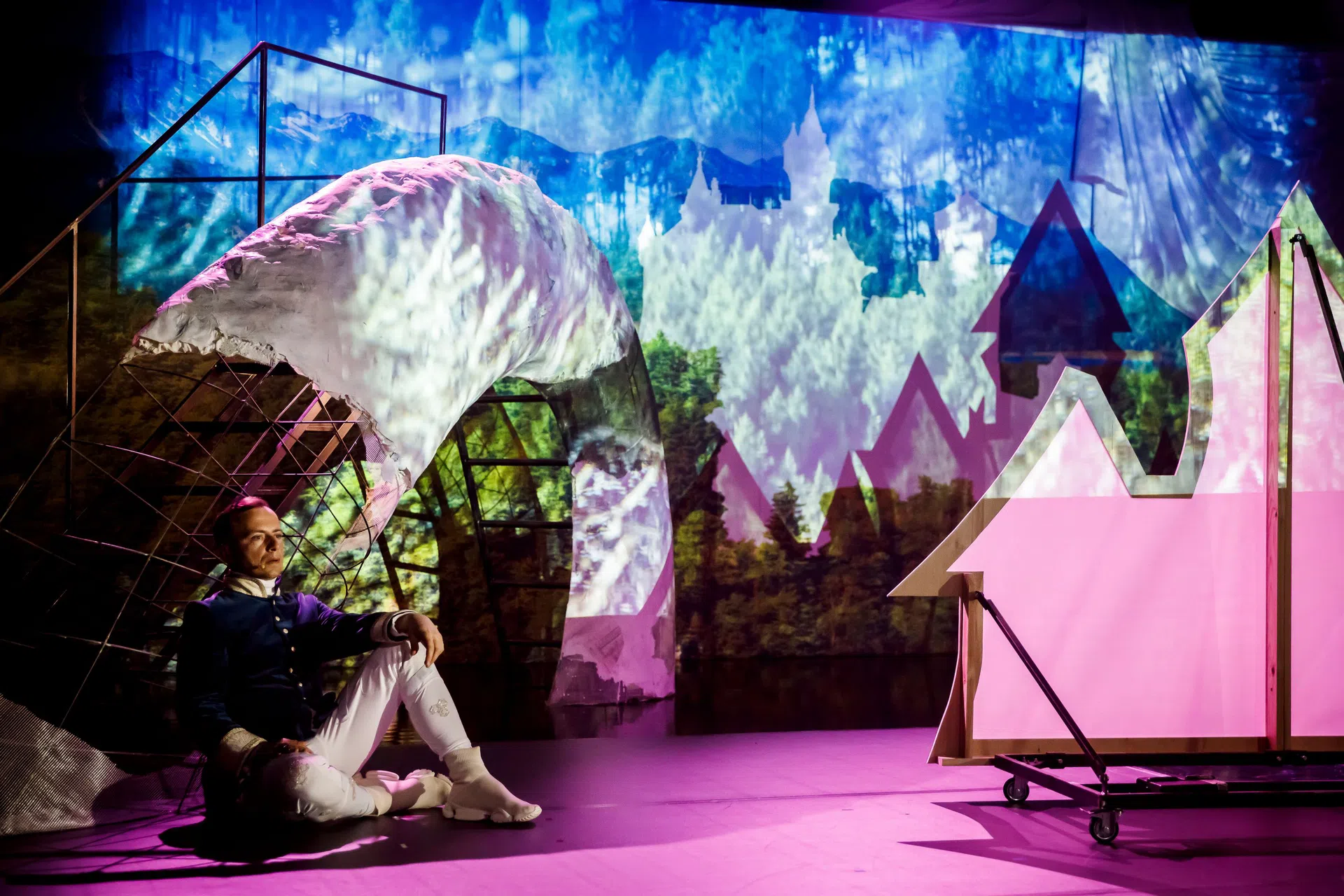 Jan Jeliński jako autor tekstu przenosi widzów, przynajmniej formalnie, w XIX-wieczną rzeczywistość, gdy w Bawarii panuje król Ludwig II, syn Maksymiliana II i Marii Fryderyki Pruskiej. Wstąpił na tron mając zaledwie 18 lat. Przez współobywateli zwany był Ludwikiem Szalonym lub Bajkowym Królem, pewnie dlatego, że nad politykę i wojowanie przedkładał sztukę (wiele zawdzięcza mu zwłaszcza kompozytor Ryszard Wagner) czy budowanie zamków (sfilmowane wnętrza jednego z nich, nieukończonego Neuschwanstein pokazuje wideo Agaty Rucińskiej przygotowane specjalnie dla tego spektaklu, a mobilna, mocno uproszczona makieta zamku stanowi główny element scenografii Doroty Nawrot). Nie interesowało go też spełnienie oczekiwań swojej rodziny i Bawarczyków, by ożenić się i spłodzić dziedzica bawarskiego tronu. Ludwik nawet zaręczył się z Zofią Bawarską, siostrą cesarzowej Austrii, zwanej Sissi, ale do ślubu nigdy nie doszło. Wiele wskazuje na to, że władca Bawarii był, jak to się zwykło dziś mawiać, nieheteronormatywny, na co wskazują zapiski z jego dzienników czy też ocalałe listy do swego adiutanta i kuzyna zarazem imieniem Paul. Wątki te szerzej zostały uwzględnione w filmie Luchino Viscontiego z 1972 roku, który, co przyznaje sam Jeliński, był w pewnym stopniu inspiracją dla jego „Ludwiga”, samego króla uczyniły zaś znaczącą postacią kultury gejowskiej. To również istotny wątek w kielecko–warszawskim przedstawieniu, którego premiera odbywa się w miesiącu dumy, szczególnie istotnym dla środowisk LGBTQ. Jan Jeliński na przykładzie bawarskiego króla pokazuje jak trudno jest zachować swoją tożsamość, także tę erotyczną, i nie ulec presji otaczającego środowiska, by wbrew sobie przejmować zachowania i postawy oczekiwane od nas przez innych. Innym ważkim problemem poruszanym w „Ludwigu” jest antysemityzm, tu ściśle związany z postacią Wagnera. Ten uwielbiany przez króla kompozytor jest zdeklarowanym rasistą, otwarcie głoszącym poglądy, które potem legną u podstaw działań przywódcy III Rzeszy, a on sam stanie się ulubionym twórcą führera. Jeśli przyjrzymy się otaczającej nas rzeczywistości bez trudu znajdziemy wyznawców poglądów Wagnera i jego żony Cosimy. A i walka osób w jakiś sposób odbiegających od normy wciąż trwa. Stąd aktualność przedstawienia w Teatrze im. Żeromskiego w Kielcach. Formalnie w nasze czasy przenoszą je nowoczesne gadżety w postaci kamerek, którymi posługują się bohaterowie XIX-wiecznej historii. I współczesny, niepozbawiony wulgaryzmów język, a także odarchaizowany obraz postaci, co szczególnie widoczne jest w przypadku Zofii i Sissi, „nowocześnie” zagranych przez Ewelinę Pankowską z Nowego Teatru w Warszawie i Dagnę Dywicką.