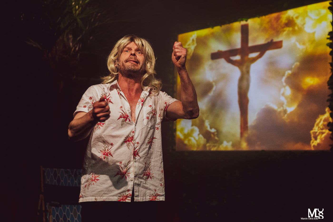 Steve’a Adlera, siedzącego pod palmą, na kameralnej Scenie Berlin, poznajemy, kiedy przebywa na „przymusowym” urlopie w Tajlandii, chcąc oczyścić i odtruć z toksyn swój organizm po używkowym nadszarpnięciu sił. Będzie to dla niego moment szczególny, dający szansę na podsumowanie tego, co robił dotychczas – i jako muzyk i jako człowiek. Słynny perkusista będzie w tym swoistym wieczorze autorskim wracał pamięcią do wspólnych przeżyć zespołu związanych ze starymi przyzwyczajeniami, z którymi trudno było się rozstać i które przeszkadzały zarówno jemu jak i kolegom korzystać z dobrodziejstw wcześniej im niedostępnych. Oczywiście pojawi się też wiele pikantnych i mocno okraszonych wulgaryzmami historii z przygód seksualnych, których podczas tras koncertowych doświadczali z wieloma kobietami. Erotyzm będzie dominował w tych opowieściach, ale nie tyle wstydliwy czy szokujący, co bardziej budujący komizm przeżywanych sytuacji, wielokrotnie wynikających z ogromnego powodzenia muzyków wśród podążających za nimi fanek. Monolog Adlera przerywany będzie wizytami skośnookiej masażystki, później niemieckiej plażowiczki, wreszcie Ozzy’ego Osborne’a, w którego z powodzeniem wciela się Piotr Sieklucki. Okoliczności tych spotkań będą mocno zaskakujące, podnosząc temperaturę intrygującej spowiedzi naszego bohatera, który nie omieszka nawet podzielić się z widzami z najbardziej intymnych szczegółów seksualnych zbliżeń. Taki tekst wymaga ze strony aktora przede wszystkim lekkości, wdzięku, niezwykłej czujności i też swego rodzaju uważnej czułości w prowokowaniu reakcji widzów. Nie uda się też tego uwiarygodnić bez odrobiny szaleństwa czy autoironii. Schimscheiner, potrafiący umiejętnie zmniejszać dystans z publicznością, zahartowany we wcześniejszych bojach z tekstami Chwastowskiego, który jako kompozytor doskonale wyczuwa rytmiczność i muzyczność wkładanej w usta aktora frazy, radzi sobie z tym doskonale, ma się wrażenie, jakby każde słowo rodziło się właśnie teraz, w kontakcie z widzem zyskiwało nową wartość i autentyczność. I tak, co i rusz śmiejąc się, oraz uczestnicząc w proponowanej przez wykonawcę grze – sądząc po żywych reakcjach spektatorów – mocno wciągającej, podążamy za aktorem, który niczym skrupulatny przewodnik prowadzi nas po tropach bardzo osobistych doświadczeń, konfrontujących postępowanie poszczególnych członków zespołu, niekiedy mało oczywistych i nieprzewidywalnych. W ten sposób stajemy się świadkami również i tego, jakimi prawami rządzi się nagłe zdobywanie rozgłosu czy popularności, jaką cenę płaci się za sukces będąc trybikiem w bezdusznej, show-biznesowej machinie liczącej tylko zyski, a nie dbającej o zachowanie choćby odrobiny zdrowego rozsądku.
