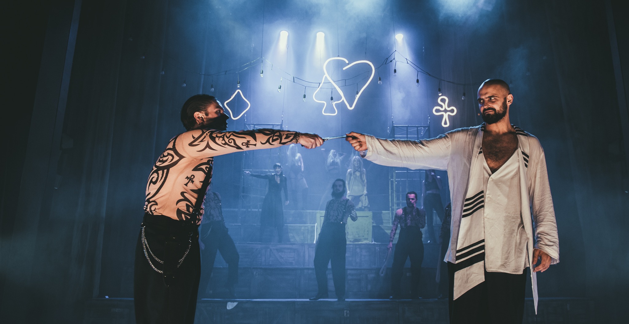 Występujący aktorzy znakomicie radzą sobie z językowo-śpiewno-tanecznym wyzwaniem, wykazując biegłość i płynność w każdej scenie czy indywidualnej sekwencji. Ich kompetencje muzyczne robią wrażenie i w połączeniu z aktorską techniką pozwalają tworzyć wyjątkowe, uderzające kreacje. W teatralnej przestrzeni bielskiego teatru artyści z wyczuciem kreślą bardzo plastyczny obraz rzeczywistości stworzonej przez autora „Sztukmistrza z Lublina” , wydobywają niteczki humoru, pieśnią przekazują gorycz i radość, nie tracąc nic z mądrości i myślowej precyzji Isaaca Bashevisa Singera. I wszyscy zasługują na imienne wyróżnienie. Reżyser wykorzystuje bogactwo warstwy dramaturgicznej powieści, a aktorzy – także ci drugoplanowi – przekładają ją na język konkretnych postaci. Mateusz Wojtasiński w roli Jaszy jest niesamowicie autentyczny, naturalny, po ludzku zmienny i niepoprawny. Dodatkowo ma w sobie ową bożą iskrę, coś wyjątkowego, wręcz czarodziejskiego. Ten  niepokorny wybraniec losu wciąż poszukuje swego miejsca w świecie, pyta o tożsamość, życiową drogę i mocuje się z Panem. Dzięki Wojtasińskiemu psychologiczny wizerunek bohatera jest bardzo bogaty i intrygujący (i jaki z niego akrobata – podziwiam!). Tradycja, zanurzona w historii kultura, która zderza się ze współczesnym światem, pełnym pokus i łatwych wyborów nie dają Jaszy spokoju, a jego rozterki stać się mogą rozterkami, które i nas dotyczą. Marta Gzowska-Sawicka jako Zewtel kipi energią, czasem (celowo) dość zabawną, ale ma też w sobie dużo wzruszającej refleksyjności, którą tak emocjonalnie oddaje. Oriana Soika, kreując postać Magdy, umiejętnie oddaje radosne usposobienie młodej, pełnej życia i nadziei dziewczyny, by potem pokazać jej przemianę, uwypuklić tragiczność losu. Wiktoria Węgrzyn-Lichosyt  w roli Estery od razu budzi sympatię, a jej śpiew porusza do głębi. Anna Guzik-Tylka pomału acz konsekwentnie odsłania niuanse charakteru pięknej wdowy Emilii – jej zmysłowość ukrytą pod warstwą dumy i dystansu. Ujmująca, pełna świeżości jest Marta Suprun jako Halinka, która równo dotrzymuje kroku pozostałym paniom. Wśród panów wyróżnia się Michał Czaderna w roli nieco tajemniczego Hermana. Czaderna, gdy tylko pojawia się na scenie w epizodycznej przecież roli, przyciąga całą uwagę. Jego brawurowa gra to po prostu majstersztyk! Na uwagę zasługują też Grzegorz Sikora – impresario i Sławomir Miska jako Bolek, brat Magdy. Rafał Sawicki – cadyk – wprowadza na scenę nieco inny klimat: metaforyczny, głęboko religijny. Cadyk pomaga Jaszy zrozumieć sens wiary, w przypowieściach oddaje jej symbolikę oraz ogólnoludzki wymiar i swym pogodnym spokojem kojąco działa na bohatera.