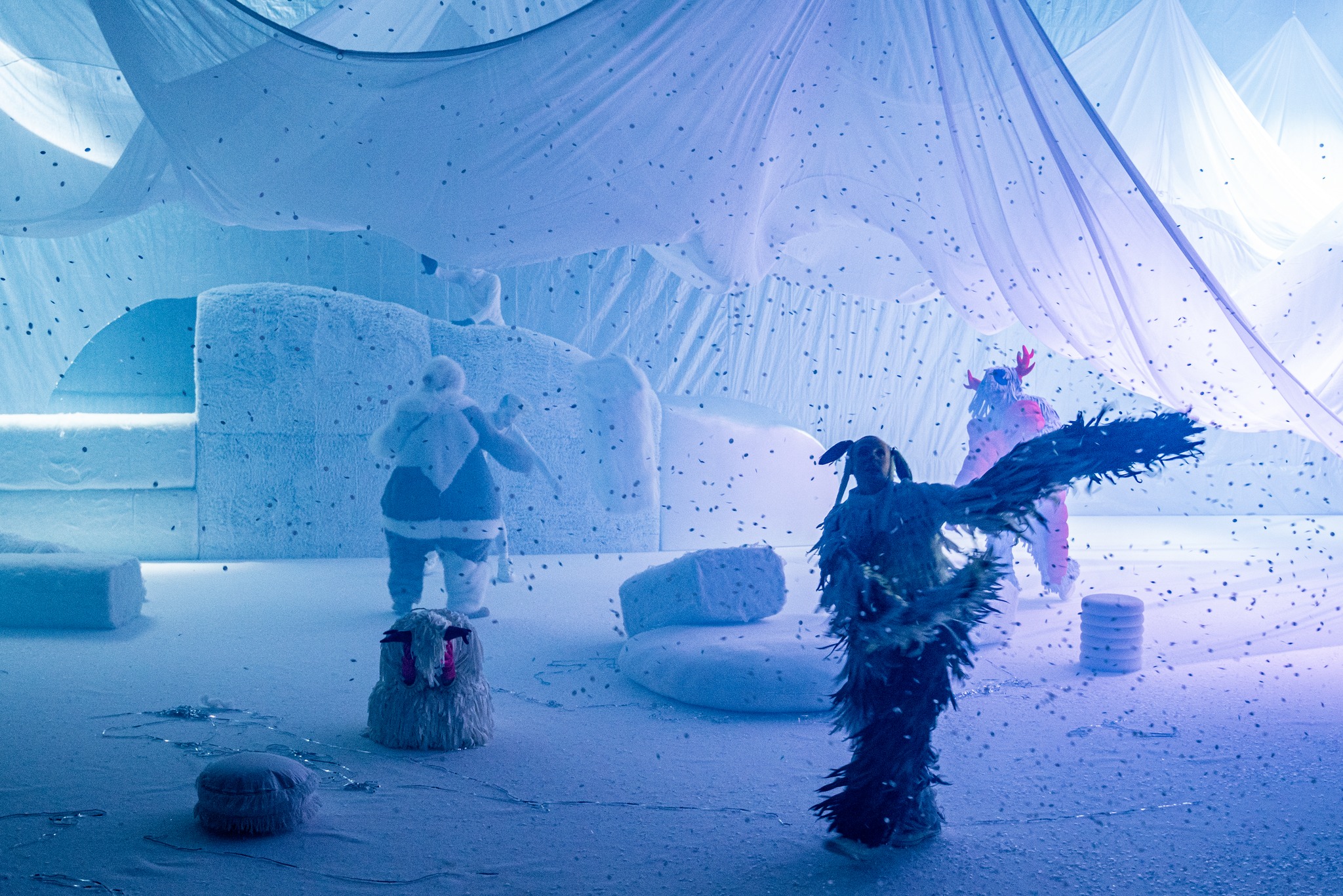 Przykuwająca uwagę scenografia harmonijnie współgra z dopracowanymi kostiumami autorstwa Marty Kodeniec. Podziwiamy frędzle i puchate tkaniny, pod którymi skrywają się Piotr Polak i Ewelina Pankowska jako rodzina Yetich, Bartosz Bielenia w roli Psa i Jan Sobolewski kreujący rolę Kawii, a także przylegające do ciała materiały, które podkreślają choreografię zwinnych i płynnych ruchów Wążusi (Krystyna Lama Szydłowska) oraz Kota (Igor Shugaleev).