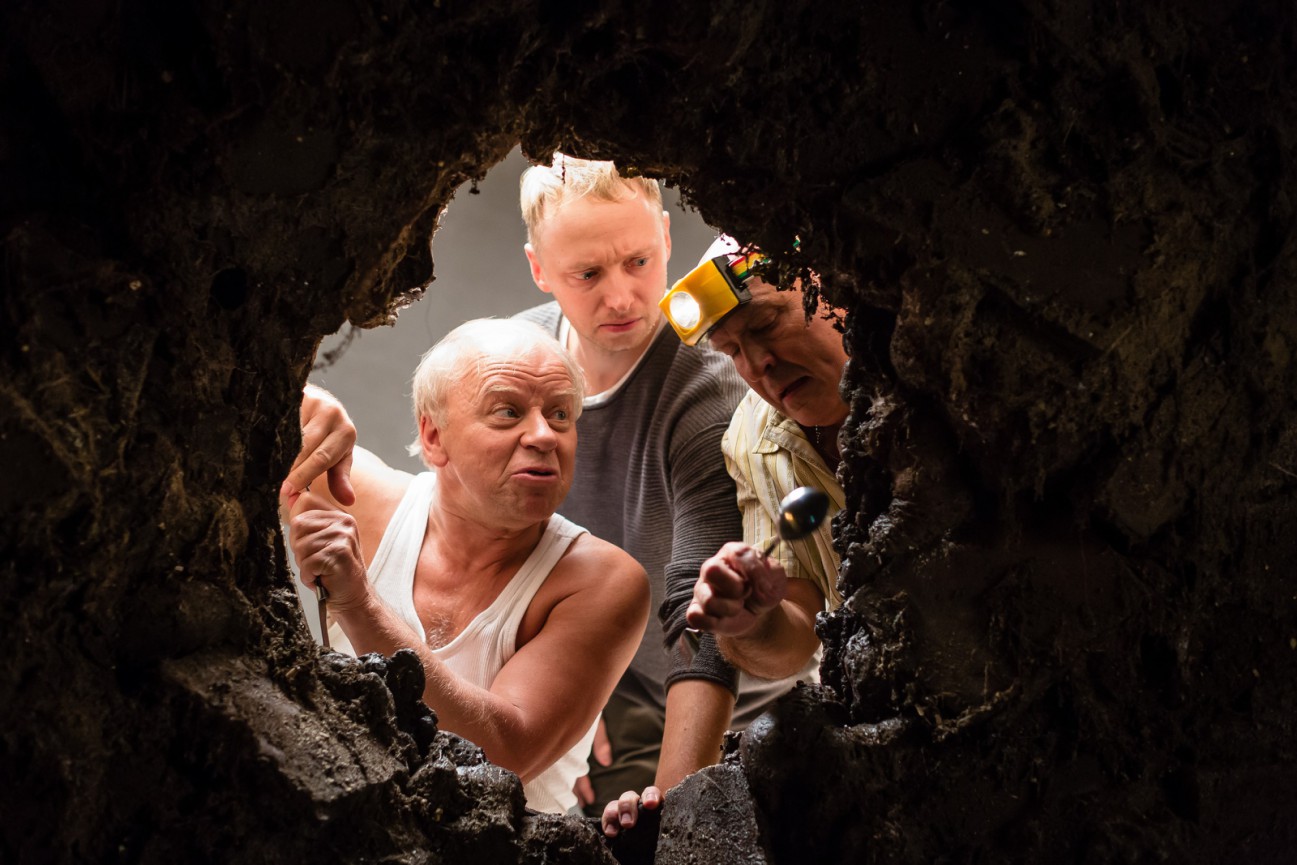 Główny bohater sztuki, architekt Aleksander Zabłocki (w tej roli występuje Bartłomiej Firlet, któremu popularność i sympatię widzów przyniosła rola aspiranta Dziubaka w „Ojcu Mateuszu”, aktor obdarzony vis comica i niekwestionowanym talentem komediowym, o czym mogłem się kilka lat temu przekonać oglądając go w podwójnej roli Panów Wonnego i Biegunki w „Chorym z urojenia” w Teatrze 6. Piętro) na prośbę gderliwej matki (Aldona Jankowska) odwiedza swojego brata Grzegorza (Philippe Tłokiński) w zakładzie karnym w Brzeszczowicach, zawożąc mu kotlety i pączki z różanym nadzieniem. Dość szybko przekonuje się, iż to więzienie bynajmniej nie przystaje do powszechnych wyobrażeń o takim miejscu. Bo ten „ośrodek”, jak nazywa go Naczelnik (Antoni Ostrouch), jest raczej… enklawą wolności, na miejsce w której trzeba czekać. Wszyscy przebywający w nim „skazani” trafili tu na własną prośbę, uciekając od matek, żon, kochanek, dzieci, całego zewnętrznego świata. W tym małym Eldorado nie mają dostępu do mediów, są odizolowani od rzeczywistości dziejącej się poza murami zakładu. Czas wypełniają im zajęcia z arteterapii (pod okiem Kaowca, Krzysztofa Krupińskiego, wykonują mebelki dla dzieci). Ale czy to uwolnienie od trudów szarej codzienności nie okaże się ułudą i pewną formą zniewolenia? O tym przekonają się ci, którzy dotrwają do przewrotnego finału (a dotrwać nietrudno, bo przedstawienie – poza tym, że jest udanie wyreżyserowane przez debiutującego nim Piotra Kurzawę, zabawne, utrzymane w dobrym tempie, niepozbawione nieoczekiwanych zwrotów akcji – trwa zaledwie 54 minuty).