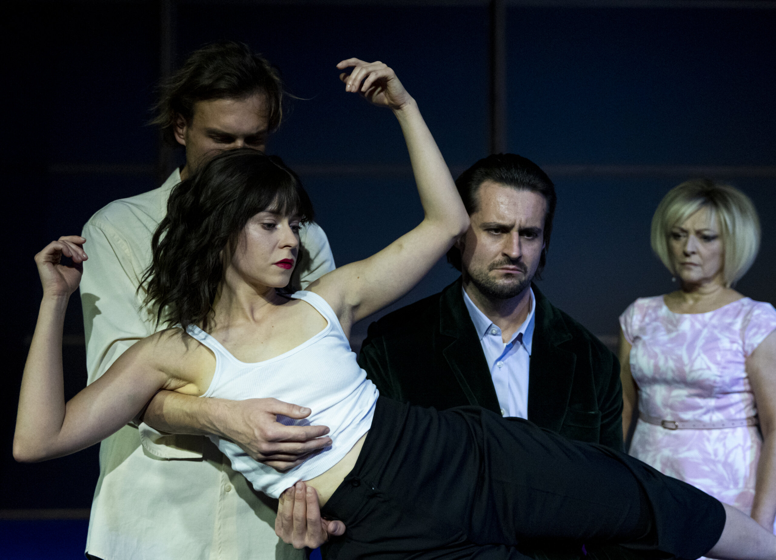 Cierpienie Charlotte po zabiegu przeplata się przez cały spektakl z jej krzykiem, obecnością bezdusznych lekarzy (Anna Magalska i Niko Niakas), czerwonym światłem (projekcje: Natalia Pośnik), niewielkimi wyrzutami sumienia wobec porzuconego męża (Maciej Raniszewski) czy rozmowami z tkwiącą w systemie oceniania Billie (Ada Dec). Niemniej Charlotte mimo to trudno polubić czy jej współczuć, podobnie jak Harrego, choć zarówno Joanna Rozkosz, jak i Igor Tajchman w spektaklu Aleksandry Bielewicz wspinają się na wyżyny aktorskiego kunsztu, to usilne dążenie ich bohaterów do życia samych dla siebie i poszukiwania miejsca na ziemi (które im na ich miłość pozwoli), wydaje się znów być poddawane pod system oceniania. Miłość za wszelką cenę, miłość w rytm transowej muzyki (Szymon Sutor, ruch sceniczny: Maria Bijak), wreszcie miłość na krawędzi w gronie 27-letnich „poetów wyklętych” (jeden z kostiumów Harrego wyraźnie nawiązuje do stroju scenicznego Jimma Morrisona. Kostiumy: Olga Mazur) odbija się czkawką zarówno w prywatnych obsesjach, jak i procesach społecznych, o których tak wspaniale w swej powieści pisze Wiliam Faulkner.