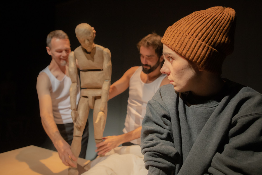 Autorka scenariusza, Lena Frankiewicz, zestawiła fragmenty literatury Toona Tellegena z osobistymi historiami członków zespołu. Ten gest miał najprawdopodobniej poszerzyć znaczenia, otwierając spektakl na wielość doświadczeń. W rezultacie powstała seria epizodów – lirycznych, groteskowych, niekiedy abstrakcyjnych – które jednak nie tworzą dramaturgicznego ciągu. Brakuje wyraźnie zarysowanej linii rozwojowej, nie śledzimy przemiany ani bohaterów, ani ich relacji. To, co w literaturze funkcjonuje jako zbiór samodzielnych miniatur, na scenie wymaga spięcia – motywu przewodniego lub emocjonalnego rytmu, który poprowadzi widza przez tę układankę.