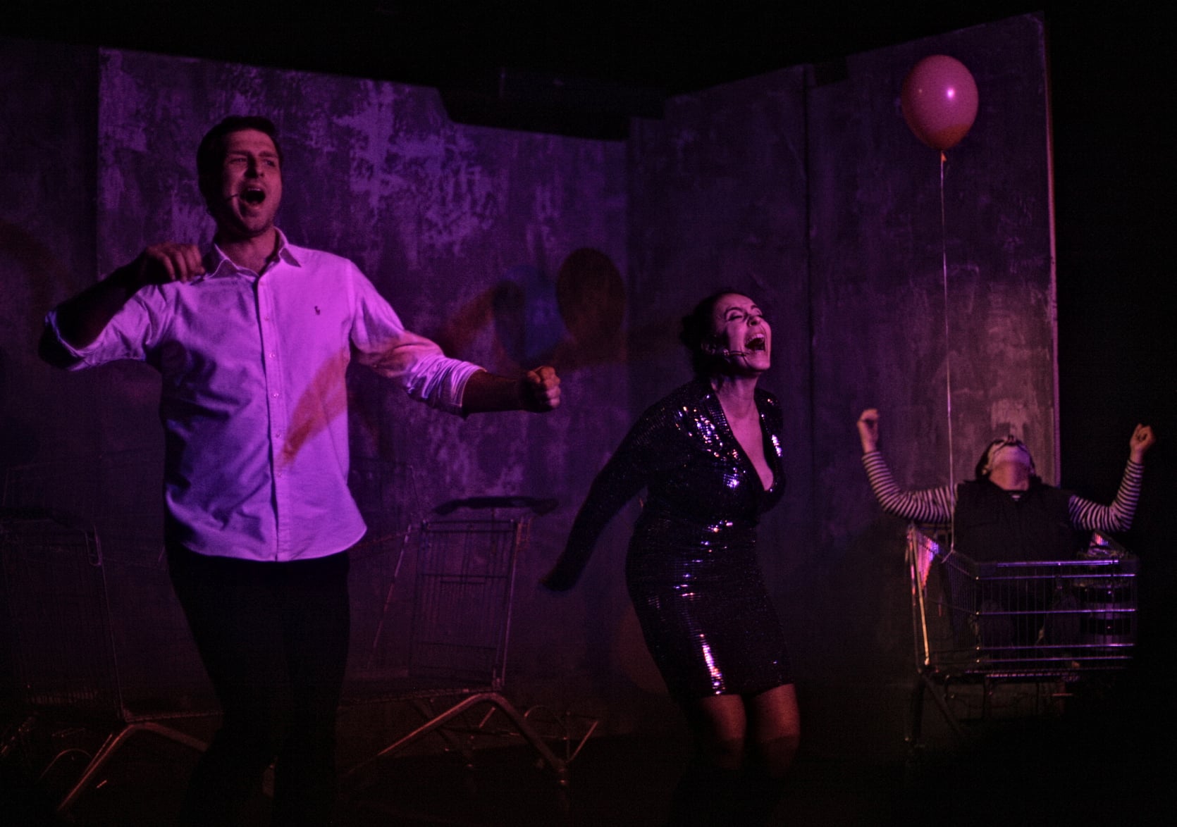 Zbieg okoliczności (a raczej standardowa historia z kanału dla dorosłych, w której to przychodzi hydraulik do klientki i wiadomo co dalej) inicjuje instynktowne seksualne zbliżenie dwojga samotnych, nieszczęśliwych ludzi. Z jednej strony mamy chłopaka marzącego o nagraniu własnej płyty, na którego nikt nigdy nie zwrócił uwagi, z drugiej zaś emocjonalnie zaniedbaną kobietę, chcącą na nowo poczuć smak prawdziwego życia. W tekstach Doroty Masłowskiej postacie zanurzone w potoku słów, co jakiś czas starają się zaczerpnąć tchu w próbach autentycznego zbliżenia z drugim człowiekiem – w spektaklu również udało się uchwycić te momenty : wspomniane zbliżenie Iwony i Kamila czy opowieść matki głównego bohatera (upiornie uroczy Pennywise w lidlowym wózku sklepowym) o nietrafionym prezencie urodzinowym były właśnie takimi zwrotami.