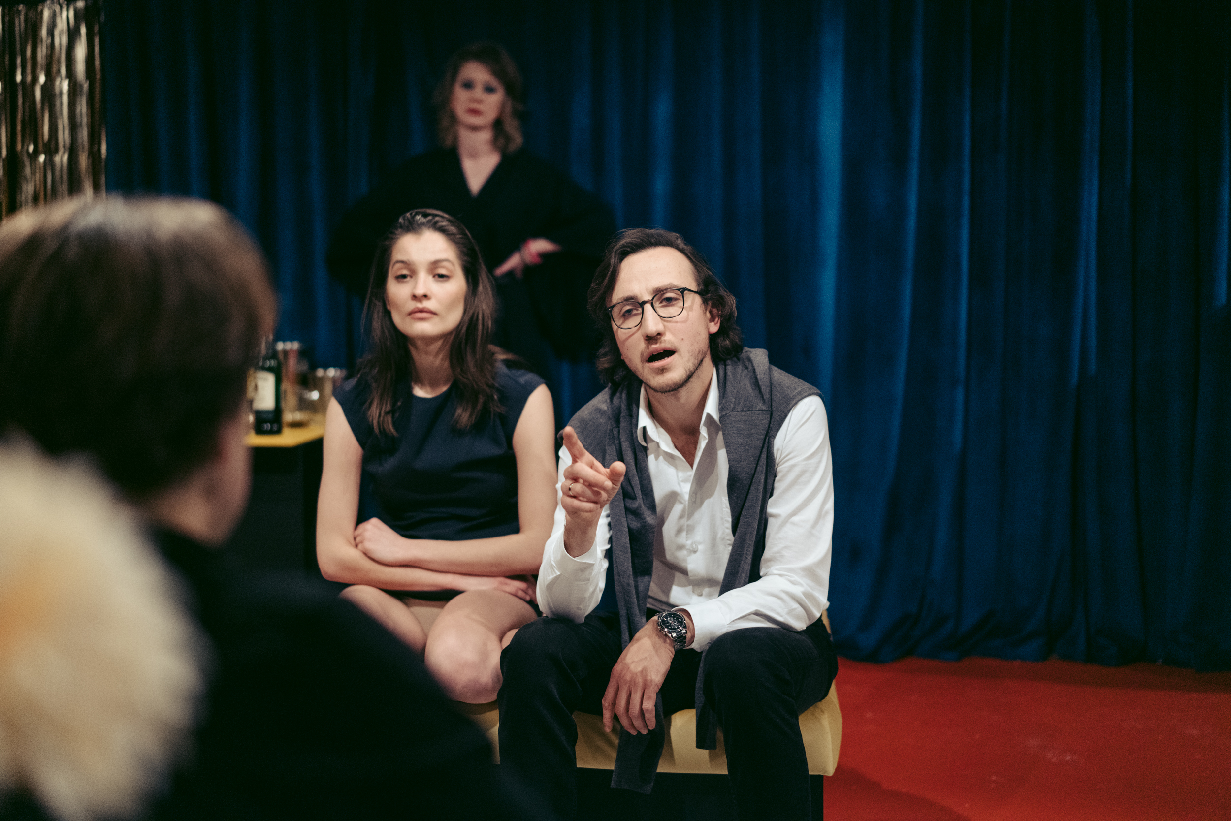 W takim układzie charakterów od samego początku widać kto jest rozgrywającym a kto rozgrywanym. Widać silny konflikt, który należy wykorzystać, aby pogłębić role. Natomiast w inscenizacji w Teatrze Ochoty tej siły zabrakło. Nie jest to wina znakomitych aktorów, którzy z godną docenienia odwagą próbowali zmierzyć się z materią dramatu. Nie jest to też wina reżyserki czy tłumaczenia Jacka Poniedziałka, zresztą również reżysera tego dramatu w Teatrze Polonia. Winą w tym przypadku może być zatarcie różnic wieku między bohaterami. Marta (Malwina Laska-Eichmann / Irmina Liszkowska) powinna być starsza od swojego męża Jerzego (Krzysztof Oleksyn) prawie o dekadę, natomiast goście, Mikołaj (Paweł Janyst) wraz z żoną (Malwina Laska-Eichmann / Irmina Liszkowska), odwiedzający znudzone sobą małżeństwo, również z założenia dramatu powinni być na początku bardziej wycofani z racji młodszego wieku i niższego stopniem stanowiska. Na tej opozycji zbudowana jest konstrukcja dramatu, w którym potrzeba wywyższenia się skłania do tragicznych w skutkach rozgrywek intelektualnych, które wyjawiają stopniowo poczucie krzywdy i kompleksy bohaterów.