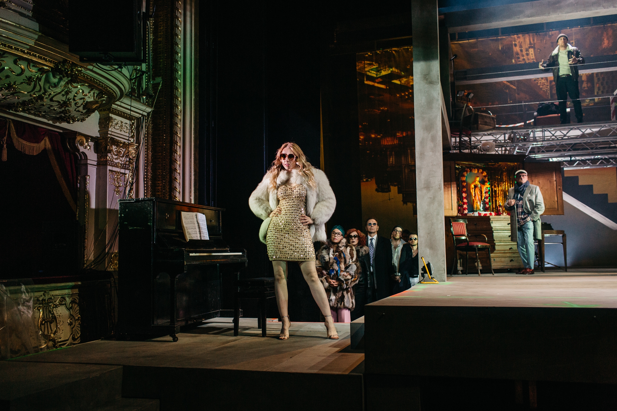 Nie powinniśmy się więc dziwić, że Stanisław Wokulski (Mateusz Janicki) wracając z Rosji ze swoim imponującym, świeżo nabytym majątkiem trafia do betonowego bloku, który jest nieukończony. Lokuje się na piętrze tego szkieletu budowli. Zresztą nie tylko on tak pomieszkuje. Dwa piętra niżej, pod sceną, wśród stosu kartonowych pudeł ma swój pokój jego przyjaciel, Ignacy Rzecki (Marcin Kalisz), oddzielony od widowni czerwono-białą taśmą ostrzegawczą. W tej prowizorycznej przestrzeni na rusztowaniu będzie się kąpać w wannie także Izabela Łęcka (Karolina Kazoń), a Kazia (Karolina Kamińska) dyskutować z Kaziem Starskim (Krzysztof Piątkowski) o niesprawiedliwej roli kobiety w świecie. Tam również odbywać się będą wakacje arystokracji oraz wszelkiego rodzaju biznesy, ponieważ do transakcji mogących pomóc Wokulskiemu w zdobyciu Izabeli dochodzą jeszcze interesy mające podźwignąć „biedny kraj” z tej betonowej tymczasowości. A dla wielu Wokulski ze swoimi 300 tysiącami rubli do roli zbawcy ekonomicznego i finansowego nadaje się idealnie.