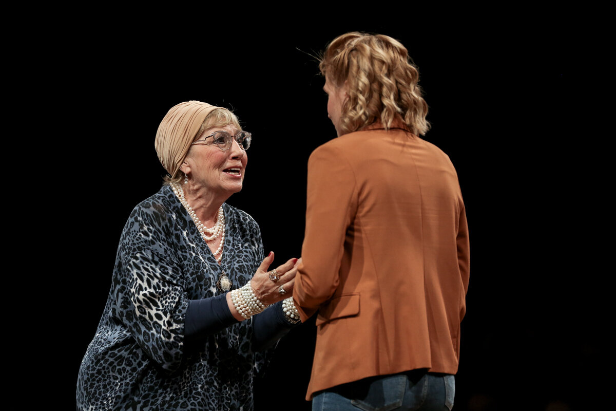 Sajnuk zaangażował do spektaklu grających na żywo muzyków, którzy są komentatorami scenicznych sytuacji (niekiedy bywa to akurat całkiem zabawne), jednocześnie podbijają wiele ruchowo-cielesnych zadań, z którymi nie wiadomo dlaczego muszą mierzyć się protagonistki. Nie służy to wszystko budowaniu dialogu i wartkości akcji, bo aktorki albo rozmawiają ze sobą na odległość całej sceny (przy tym jeśli  jedna siedzi, druga wykonuje jakieś dziwne „pląsy”), albo niczym w szkolnym teatrze ustawia się je w dziwne  konfiguracje przestrzenne i każe wyrzucać kwestie przed siebie –  trudno to zaakceptować, tym bardziej, kiedy mamy do czynienia z dramatem, w którym rozwikłanie zagadki jest rzeczą najważniejszą, a wszystkie  inne walory dramatu są temu podporządkowane.  Bohaterki postawione wobec ogniowej sytuacji próby, nadzwyczajnej i nieoczekiwanej, w narracji prowadzonej przez Sajnuka, nie mają specjalnych szans na to, by pokazać jak pozbywają się swoich masek, których już dłużej na twarzach zatrzymać nie mogą – nie dochodzi do demaskacji hipokryzji i reakcji łańcuchowej, bo została ona niepotrzebnie spotęgowana działaniami, które nie wychodzą poza nieuzasadnione eksperymenty z formą, tym samym niweczą możliwość pojawienia się pytania, czy jakikolwiek rodzaj demaskatorstwa  ma w ogóle sens.