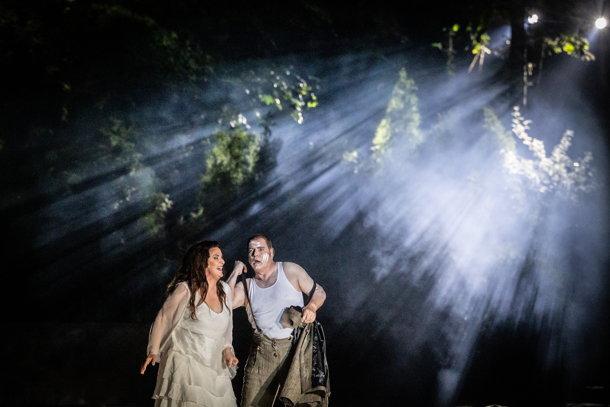 Reżyserią zajęły się trzy osoby (gdzie osób reżyserskich sześć…): Barbara Wiśniewska (najlepiej znana z wrocławskich „Krakowiaków i górali”, raczej kontrowersyjnych niż wybitnych) figurowała na afiszu obok Łukasza Witt-Michałowskiego (szefa offowej lubelskiej Sceny InVitro, niemającego dotąd bodaj nic wspólnego z operą), a do tego Tomasz Konieczny wspomógł ich „koncepcją inscenizacyjną i opieką artystyczną”. Nie mam pojęcia, jak wyglądała współpraca tej trójki w praktyce, ale sądząc po efektach polegała na dorzucaniu na wyprzódki kolejnych grzybów w sceniczny barszcz. Tyle, że prócz pomysłu wprowadzenia na początku III aktu niemej rozmowy Sternika z Erykiem grzyby te z trudem nadawały się do jedzenia. Reżyserskie trio, mówiąc krótko, zaprezentowało cały katalog pomysłów złych, nieczytelnych, banalnych i kiczowatych.