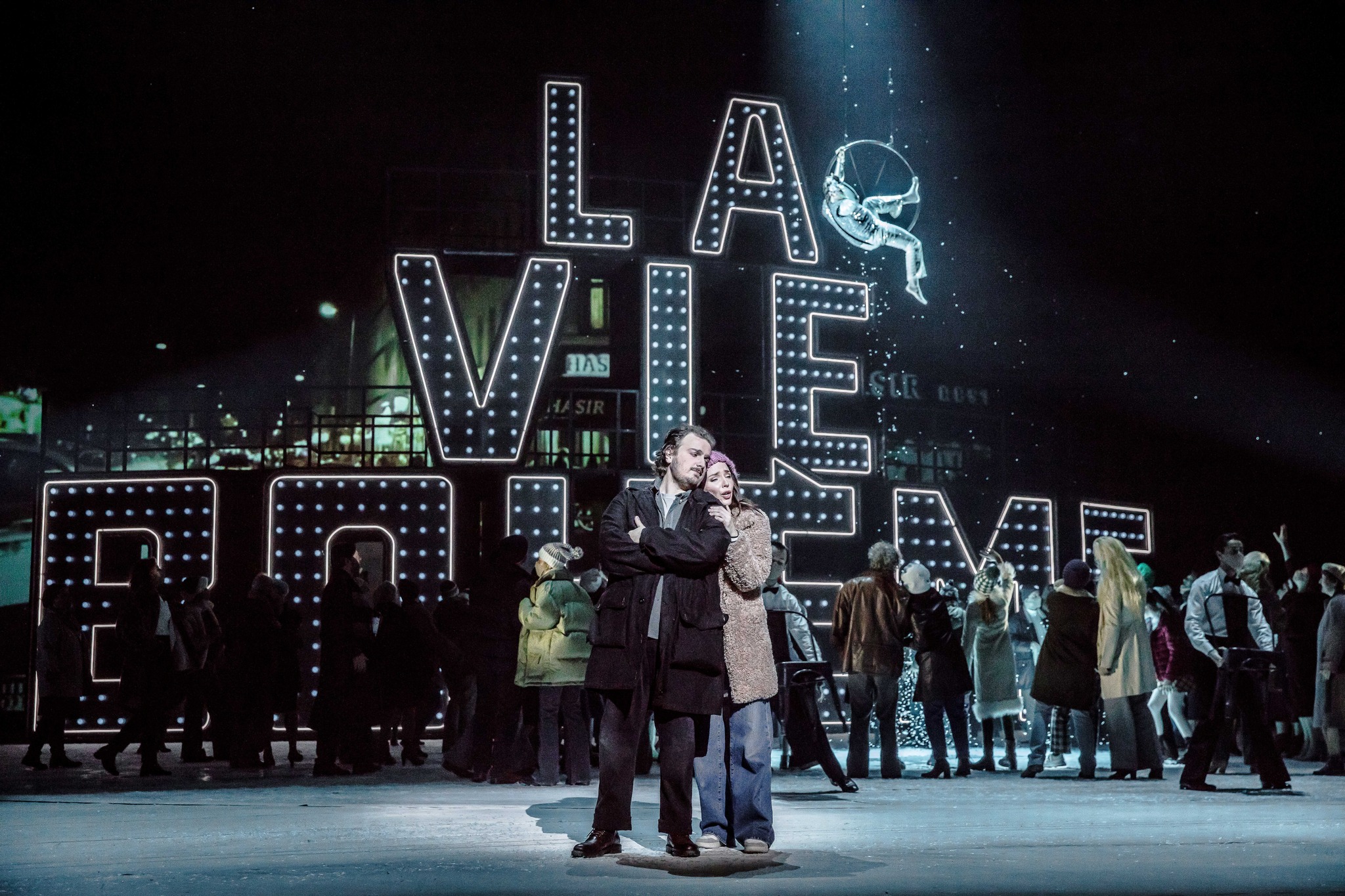 Bardzo wyrównany jest w tej inscenizacji zestaw solistów, którzy doskonale radzą sobie wokalnie i aktorsko również w scenach zbiorowych. Pięknie zostały wykonane wszystkie sceny ansamblowe, a słynny kwartet zakochanych par zabrzmiał wręcz zjawiskowo. Jednak prawdziwym odkryciem w tym spektaklu jest dla mnie Ilya Kutyukhin w roli porywającego Marcella, to śpiewak niepospolitej indywidualności, dysponujący urzekającą barwą głosu, silną i mięsistą, do tego bardzo utalentowany aktorsko. Natomiast Davide Giusti jako Rodolfo zbyt często posługiwał się w podejściach do dźwięków wysokim używaniem forte. Ten brak dźwiękowej subtelności, ciepła i szlachetności mógł nieco w odbiorze przeszkadzać. Uniknęła tego natomiast Adriana Ferfecka, która zachwyciła delikatnością, liryzmem i pięknie prowadzoną frazą, intonacyjnie i emisyjnie bez najmniejszego zarzutu. Jej Mimi nie ma sobie nic z naiwnego, nieszczęsnego dziewczęcia, to postać jakby bez zdziwienia przyjmująca zbliżający się kres życia, dużo bardziej dojrzała i świadoma tego, czym może być miłość i jak brak odpowiedzialności partnera może ją zabijać. Ferfecka w finałowej scenie z Rodolfem osiągnęła niezwykły poziom wzruszenia, skumulowało się w jej odejściu wszystko co wcześniej było nośnikiem zarówno jej szczęścia, jak i rozpaczy. Tego, co miało być piękne, a co skończyło się tragicznie za sprawą niedojrzałości jej partnera, który najpierw jej chorobę zlekceważył, później nie mógł jej udźwignąć, wreszcie nawet śmierci ukochanej jakby nie zauważył.