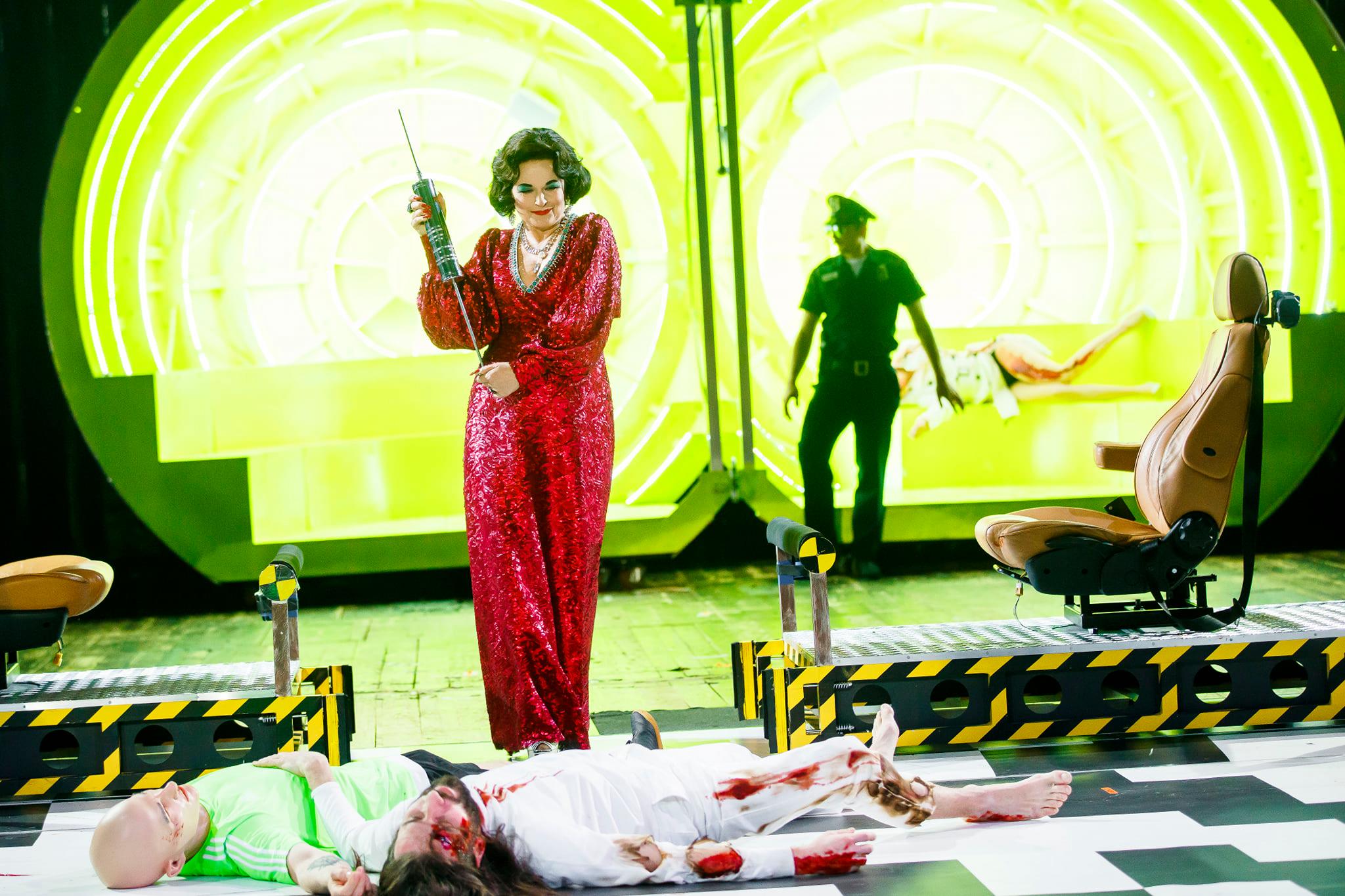 Natomiast doskonale udało się Natalii Korczakowskiej zbudowanie chaotycznego, przemocowego i rozseksualizowanego świata, w którym liczą się jedynie doznania cielesne. Atmosferę buduje scenografia (Natalia Korczakowska/Marek Adamski) – trochę futurystyczna, surowa, mechaniczna. Wpisują się w nią ekrany i atrapy samochodów, które stają się nośnikiem coraz to nowych perwersji. Klimat podbija warstwa dźwiękowa ułożona przez Jacka Sienkiewicza. Łzy i ból stają się fetyszem i źródłem cierpienia psychicznego, które trudno zaopiekować w popieprzonym i surrealistycznym świecie bez duszy.