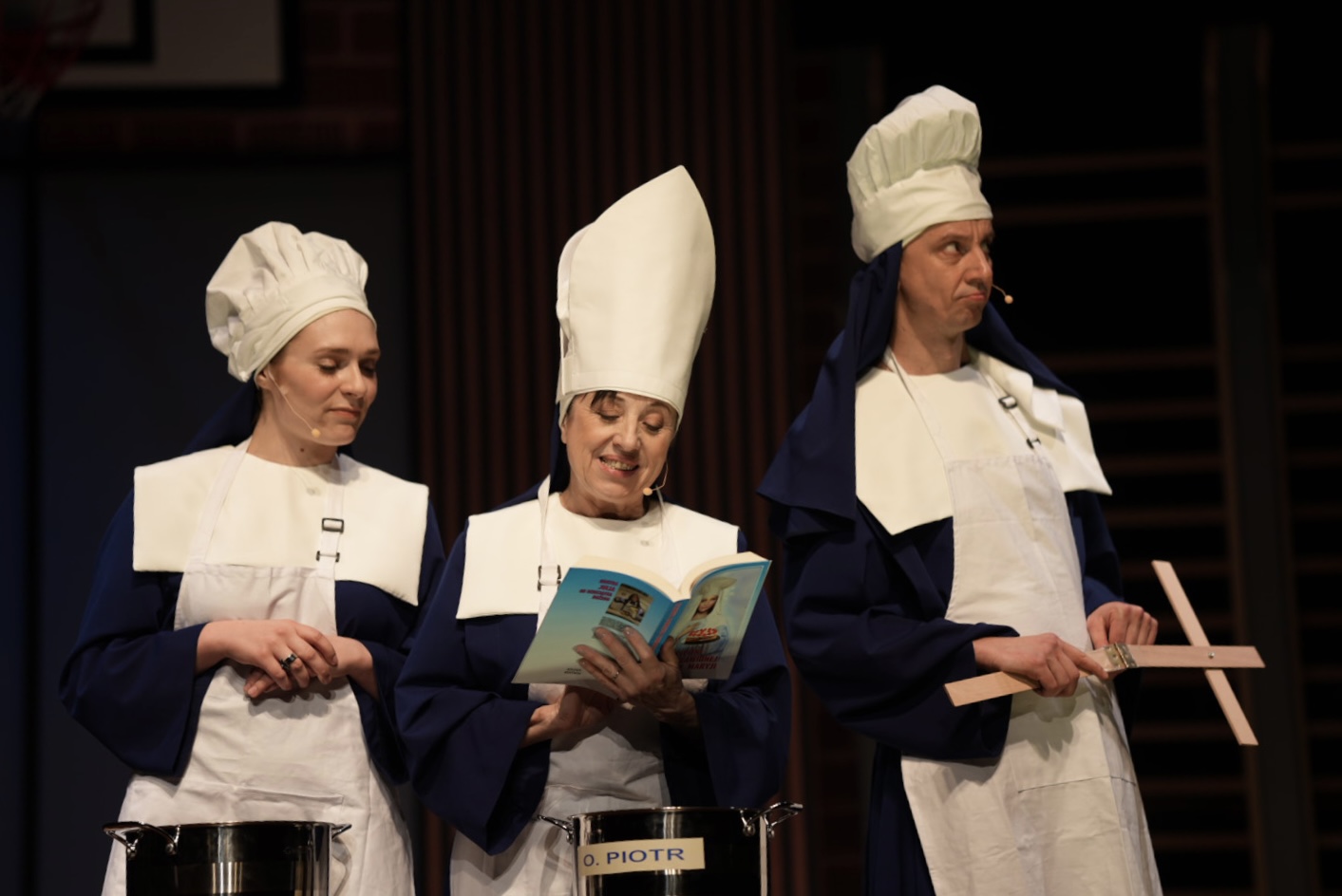 Niestety, spektaklowi Mariusza Kiljana do Broadwayu daleko, co wynika przede wszystkim z faktu, że doświadczenie musicalowe zaangażowanych aktorek jest dość skąpe. I to głównie decyduje o nie najwyższym poziomie wokalnym, zwłaszcza w scenach zbiorowych, które pod względem intonacyjnym mogą rozczarowywać. Aktorsko najlepiej radzi sobie Hanna Śleszyńska jako Matka Przełożona, Siostra Mary Regina, ale myślę, że są to dopiero zadatki na stworzenie pełnokrwistej postaci, zwłaszcza, że wokalnie też nie jest jeszcze najlepiej. Najciekawiej wypada Modest Ruciński w roli Chodzącego Nieszczęścia czyli Siostry Mary Amnezji, której marzeniem jest, by być jak Dolly Parton i śpiewać western and country w Nashville. Na pewno Śleszyńska i Ruciński to najjaśniejsze punkty warszawskiej obsady; oboje tworzą bez wątpienia role najbardziej sympatyczne, szczerze zabawne, dowcipne, do tego nie przerysowane i zachowujące dobry smak w wyważeniu tego, co komediowe, a co podążające w kierunku nieco groteskowym. To jednak za mało, by próby pokazania w piosenkach i monologach tłumionych pokładów ekspresji, które powinny ujawnić się podczas prezentowanego w sali gimnastycznej show, uznać za w pełni zadowalające. Tym samym pod znakiem zapytania pozostaje to, jak wysoki dochód uda się zgromadzić i czy pomoże w zapobiegnięciu kłopotów z powodu zbliżającej się kontroli sanitarnej, gdy kilka otrutych zakonnic wciąż jeszcze pozostaje w lodówkach. Dlatego dobrze, że chociaż pojawiająca się tu i ówdzie aluzyjność, a także odwoływanie się do uczuć czy wartości religijnych zostały w odpowiedni sposób wyważone, by służyć przede wszystkim dobrej i czystej zabawie.
