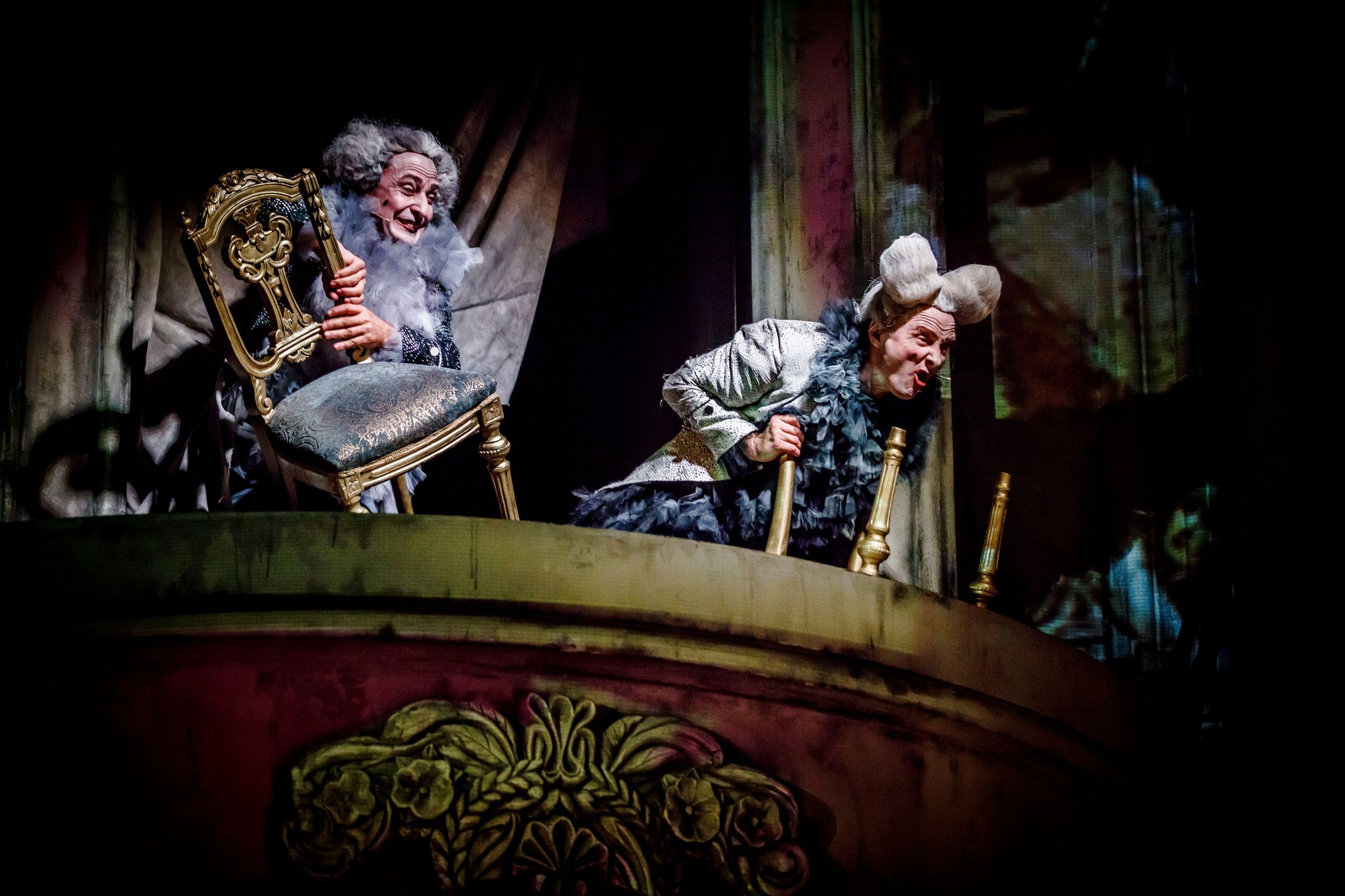 Ale nie byłoby tego przedstawienia bez aktorów drugiego planu: Maciej Wyczański jako dyrektor opery Orsini Rosenberg jest wyborny, równie dobry Karol Wróblewski jako szambelan von Strack oraz Zbigniew Dziduch – baron van Svieten. Wyczuwają komediowy ton i idąc za wskazówkami Anny Wieczur dobrze oddają jej reżyserski zamysł. Na koniec wymienię intrygujących Venticellich – Łukasza Lewandowskiego i takiegoż Sławomira Grzymkowskiego. W duecie grają niepoprawnych żartownisi, aż do przesady, acz cudnie złośliwych i hałaśliwych, którzy otwierają i zamykają spektakl. Obaj mocno tkwią w świecie umownego teatru, nieustannie towarzyszą Salieriemu, jak koty wspinają się po balkonach i komentują wydarzenia.