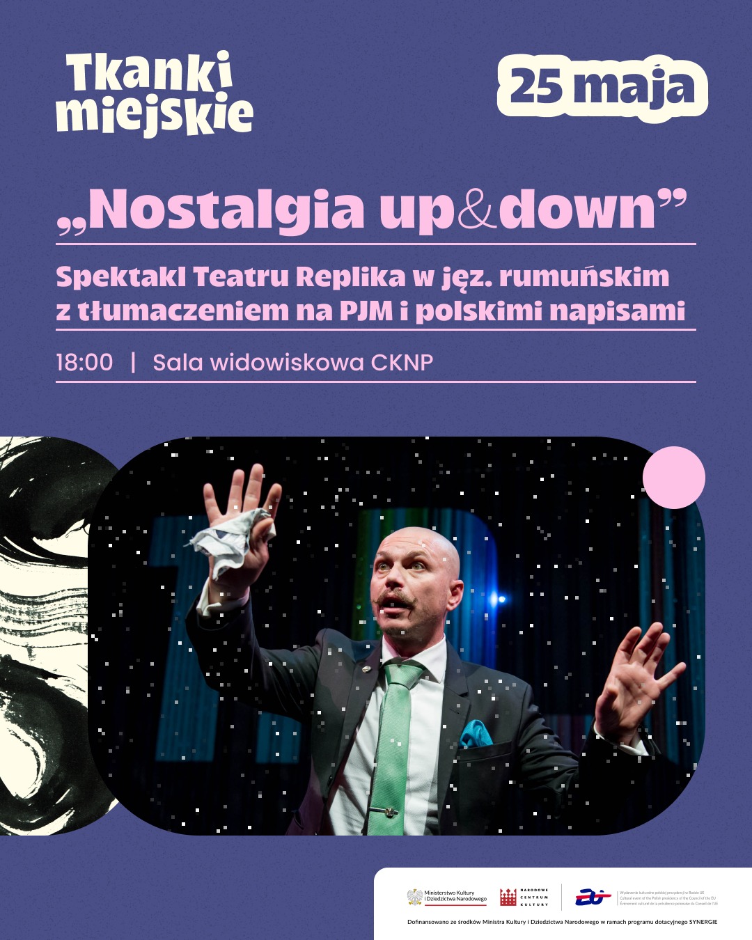 Teatr Replika z Bukaresztu przedstawi spektakl „Nostalgia up&down” – przenikliwy, z odważnym komentarzem do rzeczywistości społeczno-politycznej, łączący lata 80. z dzisiejszymi dylematami kultury. Centrum Kultury Nowy Pafawag 25.05, godz. 18:00.