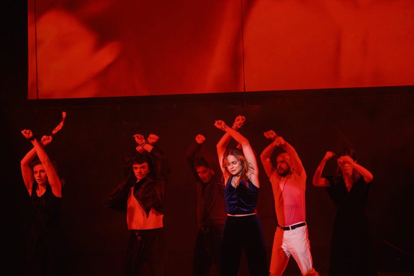 Surowa scenografia Łukasza Mleczaka nie odciąga wzroku od esencji dramatu. Wystarczy kilka ciemnych krzeseł, duże lustro (co ważne – jest to krzywe lustro, odbijające nasze i aktorskie myślenie o tym drugim, obcym), kamera Konstantego i duży ekran w tle, na którym wyświetlane są obrazy przez niego zarejestrowane. Nawet obraz Siemiona „gra” w tym spektaklu, spaja się z całością. Nie ma tu ani jednego niepotrzebnego elementu. Ważne jest światło Moniki Stolarskiej i muzyka Wojciecha Frycza oraz Kuby Dyniewicza, a także zmysłowa choreografia autorstwa Krystyny Lamy Szydłowskiej.