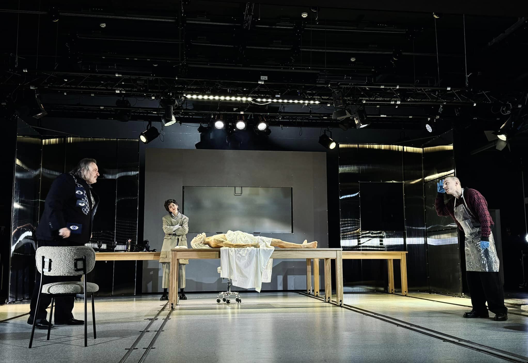 Surowa, ascetyczna scenografia Katarzyny Leks ani przez moment nie pozostawia widzowi wątpliwości, że oto znajduje się w przestrzeni funeralnej, a dokładniej rzecz biorąc w zakładzie pogrzebowym. Tym bardziej, że na stole sekcyjnym leżą zwłoki gotowe do pochówku (ale są też dwa inne mobilne stoły, które w sprytny sposób przenoszą miejsce akcji do domu Katrin lub do piekarni). Tanatopraktyką w tym zakładzie zajmuje się tytułowy Helgi, a właścicielem jest jego ojciec. Nie jedyny to ojciec w świecie postaci sztuki Tyrfingssona, wziąwszy choćby pod uwagę wspomniane zwłoki Kristmundura – to ojciec Katrin, od niedawna dziewczyny Helgiego, z którym to ojcem nie miała ona w przeszłości prawidłowych stosunków. Generalnie w sztuce tej figura ojca jest wiodącą i dotyczy także pozostałych bohaterów, czyli Piekarza i Dziewczynki. Na plan pierwszy wysuwa się relacja tytułowych bohaterów. Helgi jest całkowicie zależny od swojego ojca, nie potrafi sam podjąć najbłahszej decyzji. Despotyczny Jón jest źródłem nieszczęśliwego bytowania swojego syna, nie pozwala mu na samodzielność, samodecyzyjność, dorosłość. A na dodatek umacnia w nim strach przed mającą się spełnić tragiczną wizją. Helgi podejmuje walkę z toksycznym ojcem, ale czy uda mu się wybić na niezależność? To już trzeba zobaczyć na scenie kieleckiego teatru.