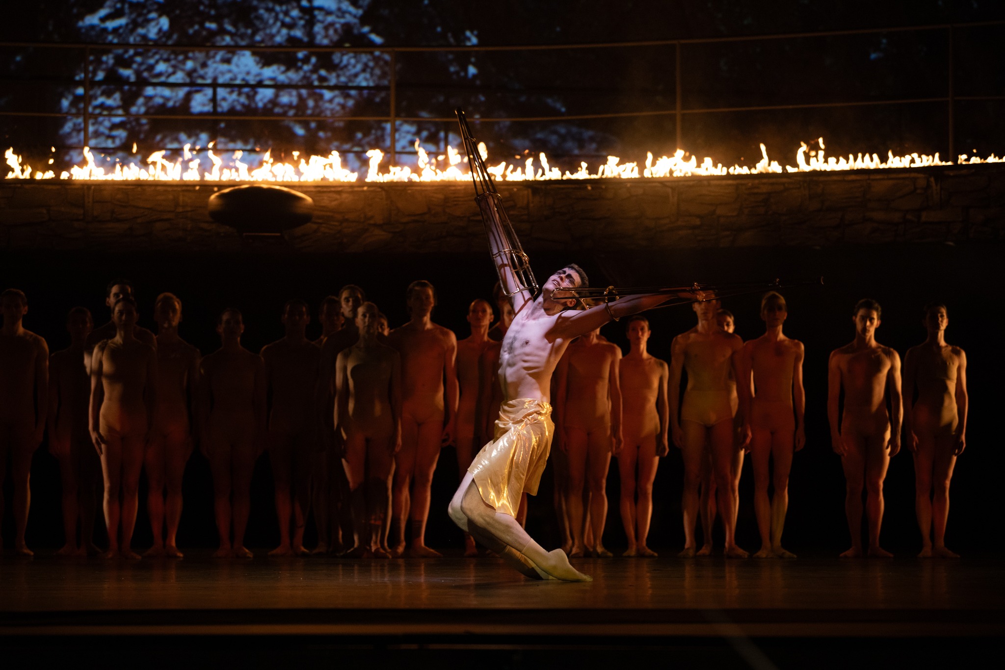 Choreografia Pastora jest tu wyjątkowo oszczędna, wręcz ascetyczna – nie szuka efektów, tylko klarownie prowadzi myśl. Ruch nie służy pokazowi sprawności, ale opowiadaniu – a raczej wywoływaniu stanów i nastrojów. Znakomite są partnerowania, bardzo precyzyjne układy grupowe, dobrze prowadzona dynamika całości. Szczególną uwagę przyciągają soliści. Vladimir Yaroshenko jako Zeus imponuje gestem, wyrazem i fizyczną elegancją. Paweł Koncewoj pokazuje Epimeteusza z czułością i dramatyzmem. Prometeusz Patryka Walczaka to postać pełna siły, ale też wewnętrznego rozdarcia – naprawdę przejmująca interpretacja. Kristóf Szabó jako Orzeł zachwyca kontrolą nad ciałem i trudnym kostiumem – jego solo w drugiej części robi ogromne wrażenie. Chinara Alizade w roli Pandory porusza techniczną finezją i dramatycznym napięciem – jej obecność na scenie jest magnetyczna.