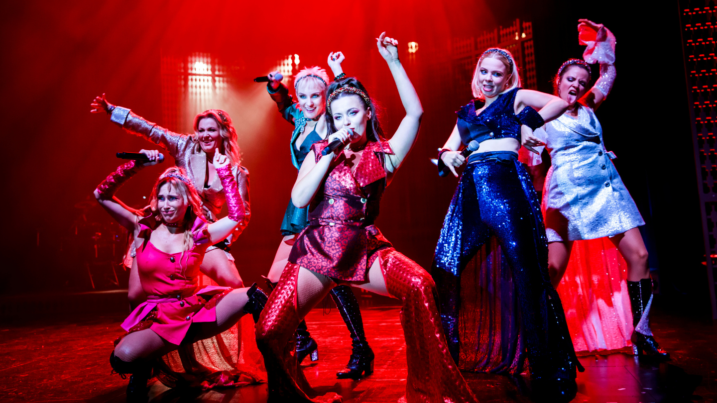 To nie jest typowy musical – chciałoby się napisać i skarcić natychmiast za głupotę tych słów. Bo jaki jest wzorzec współczesnego musicalu? Czy to taneczno-śpiewana fabuła jak „Deszczowa piosenka”, rapowany monument jak „Hamilton”, rock-opera jak „Jesus Christ Superstar”, fringe jak „Islander (Wyspa)”? Od dawna musical wymyka się kategoryzacji, rozgałęziając na nurty i nurciki, rozbłyskając nowymi formami oklaskiwanymi jako rewolucje czy kolejne drogi. „SIX” jest przykładem musicalu-koncertu, w którym non-stop burzona jest czwarta ściana, a bohaterki zachowują się jak gwiazdy pop, raz po raz zatrzymując się, by obgadać czy to, co robią idzie we właściwym kierunku. Punktem wyjścia jest postawienie na scenie: Katarzyny Aragońskiej (Olga Szomańska), Anny Boleyn (Aleksandra Gotowicka), Jane Seymour (Agnieszka Rose), Anny z Kleve (Małgorzata Chruściel), Katarzyny Howard (Anna Terpiłowska) i Katarzyny Parr (Marta Skrzypczyńska). Panie ewidentnie chcą ze sobą rywalizować, wybierając jakże polską kategorię pt. „kto ma najgorzej”. Precyzyjniej – która miała najgorzej ze swym mężem, tym samym, jedynym, niepowtarzalnym Henrykiem VIII. Na scenie Królowym towarzyszy zespół czterech instrumentalistek, a całość ma wręcz kampową atmosferę popowego koncertu. Dużo świateł, jeszcze więcej jaskrawości i piosenki stylizowane na utwory najbardziej znanych współczesnych div (Beyoncé, Adele, Celin Dion, Alicia Keys, Miley Cyrus).