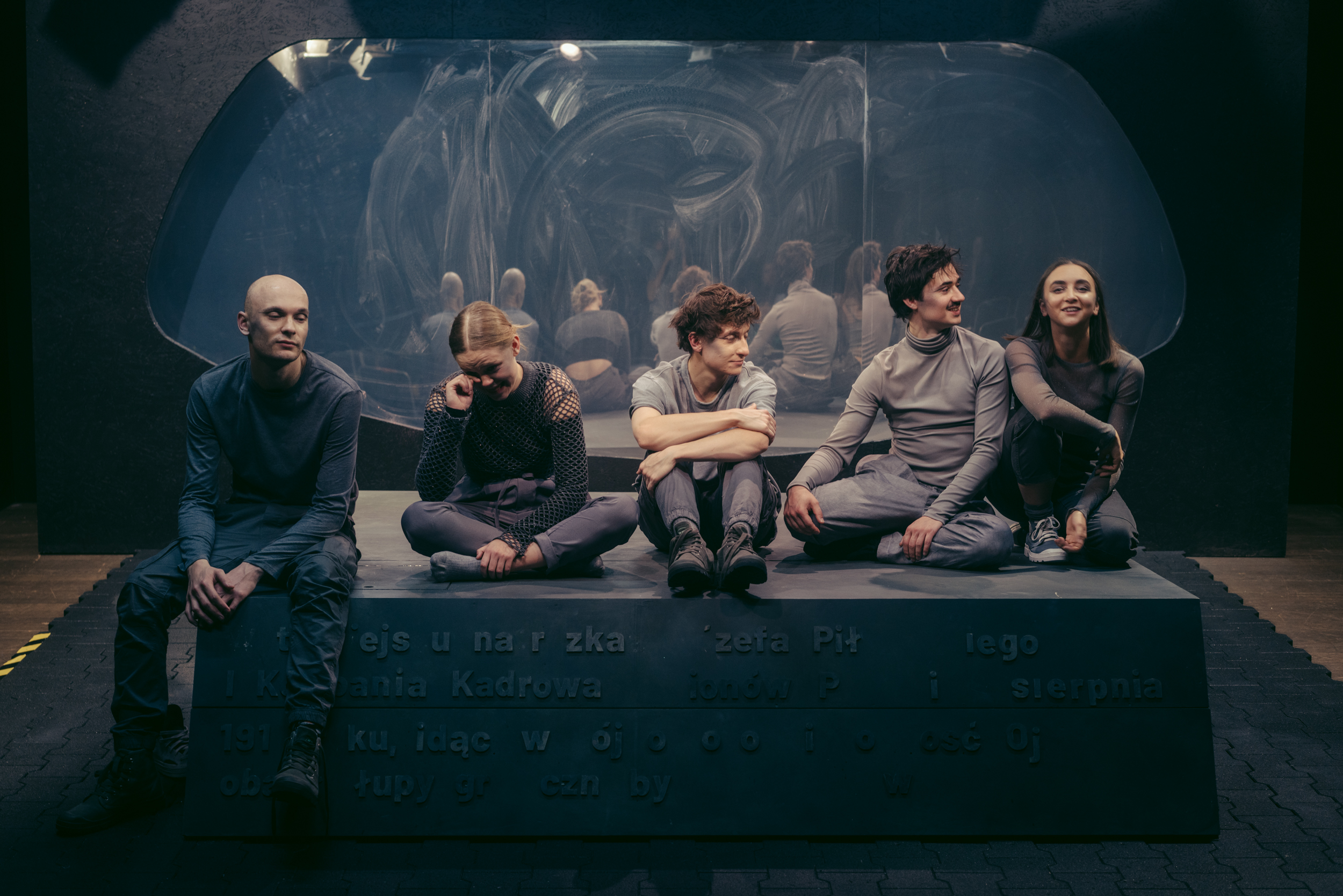 Siłą napędową siódemki jest piątka, a gwoli ścisłości: pięcioro. Laureatki i laureaci kolejnej edycji aktorskiego Polowania na motyle zdają tym popisem wszystkie egzaminy z teatralnej gotowości. W kreacji bohatera przechodniego, w wielopostaciowości, formalnych zadaniach i chóralnych opowieściach jak na dłoni widać bezszelestną współpracę zespołu aktorskiego. Nie ma znaczenia, czy wcielają się w ekipę Klinersów, żonglują wcieleniami głównego bohatera, obracają się w konwencji teatru cienia, plączą się w parawanie polskości czy mówią jednogłośnie – uważność, dokładność i punktualność, które prezentują, budzą podziw. Jest w nich ujmujący pierwiastek zabawy w teatr. Gdy informują nas o wybuchu wojny i wyliczają elementy rzeczywistości, które mogą bezpowrotnie utracić, zdejmują postaciowe gorsety, stają się prywatnie poruszającymi w swoich przeżyciach. Mimo licznych zbiorowych kreacji i odgrywania jednakowych zadań zachowują swoje indywidualności. Filip Orliński oscyluje między swobodnie nakręcaną dynamiką zabawy a introwertycznym zanurzaniem się w sobie, budzi to pragnienie dowiedzenia się, co kryje się w jego zamyślonych oczach. Agata Łabno przyciąga dziecięcym wręcz zaangażowaniem i odcieniami ironicznej gry, by później dokonać konfrontacji z własną dojrzałą kruchością. Konrad Żygadło w całej rozpiętości swojej dynamiki i energetycznych reakcji, którymi ożywia kolejne postaci, pozostaje w stałym kontakcie zarówno ze scenicznymi partnerami, jak i widzami. Martyna Czarnecka intensywnie kreuje swoją wizję świata, kreśląc wyraźne wizerunki. Janek Litvinovitch zaskakuje kilkukrotnie gamą silnych propozycji odmiennych od reszty zespołu, to znów wyróżnia się zdystansowaną emocjonalnością. Bije od tego zespołu świeżość, chęć i radość ze scenicznej obecności, znane szeroko z dyplomowych realizacji.