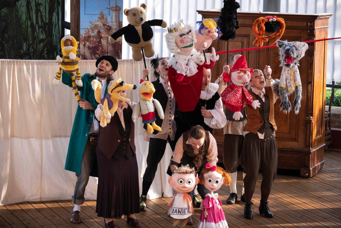 Stęsknione, opuszczone, zamknięte w skrzyniach, zadekowane w szafach przez ostatnie pół roku – lalki teatralne, wreszcie wyjrzały na światło dzienne i to dosłownie. Nie w plątaninę sztankietów nad ich głowami, nie w sceniczną czerń, lecz w pełne, majowe słońce! Wyskoczyły rozśpiewaną zgrają na Scenę Szekspirowską w ogrodzie Teatru „Baj Pomorski” w Toruniu i, jako pierwsze w historii, „zaśpiewały” oraz „zagrały” w spektaklu Lalki śpiewają wyreżyserowanym w ramach Sceny Inicjatyw Aktorskich na jej deskach dla małej (3+) i dużej publiczności, równie jak dzieci stęsknionej żywej sztuki animacji: dla roześmianych pociech i zachwyconych ich szczęściem rodziców!