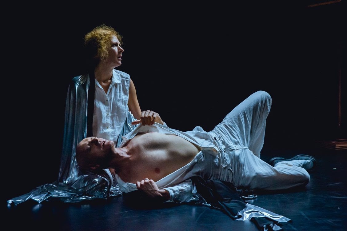 Aktorzy odczytują tekst “Dzienników…” z ustawionych przed sobą tabletów-podkładek. Jest przecież zapisem realnej śmierci, prawdziwego cierpienia; nie ma tu fikcji, to zdarzyło się “naprawdę”. Konwencja zdaje się być uzasadniona, ale nudna i nawet łza się momentami w oku zakręci. Kiedy kalendarz cofa się do momentu życia Ingrid Bergman (Marta Zięba) i ona wchodzi na scenę; w kostiumie śmierci z “Siódmej pieczęci”, powoli ściągając go z siebie, dołącza do dialogu.