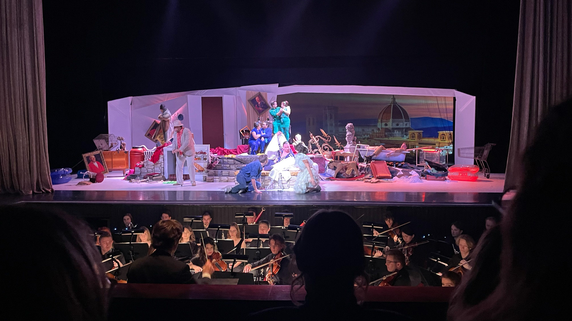 A po przerwie zaczął się „Gianni Schicchi”, i nagle odmieniło się wszystko. Kontrast nie mógłby być wyrazistszy – także dlatego, że jeśli w „Angelice” na scenie królował minimalizm, dom zmarłego Buosa Donatiego zaściełały całe sterty rozmaitych gratów. Inwencja reżyserki zrodziła tym razem przykuwającą uwagę od pierwszych chwil farsową opowieść o zachłannej, toksycznej rodzinie, we współczesnych dekoracjach, ale z przymrużeniem oka – ta scenka chodzenia po wygiętych grzbietach Donatich, ten przytulany przez Schicchiego szkielet Buosa, ten niemy film, w który wskakuje na chwilę tytułowy bohater! Na osobną pochwałę zasługuje podejście do kostiumów. Choć to ubiory, jakie regularnie widujemy na ulicy, udało się nimi bez pudła oddać zarówno zwyczajność Rinuccia, jak i nuworyszostwo Schicchia – istnego Edka ze złotym łańcuchem, w hawajskiej koszuli i jednej (sic!) czerwonej skarpetce. Ile zaś potu trzeba było przelać na próbach, by uzyskać u śpiewaków taką naturalność pantomimicznych gestów, mogę jedynie zgadywać.