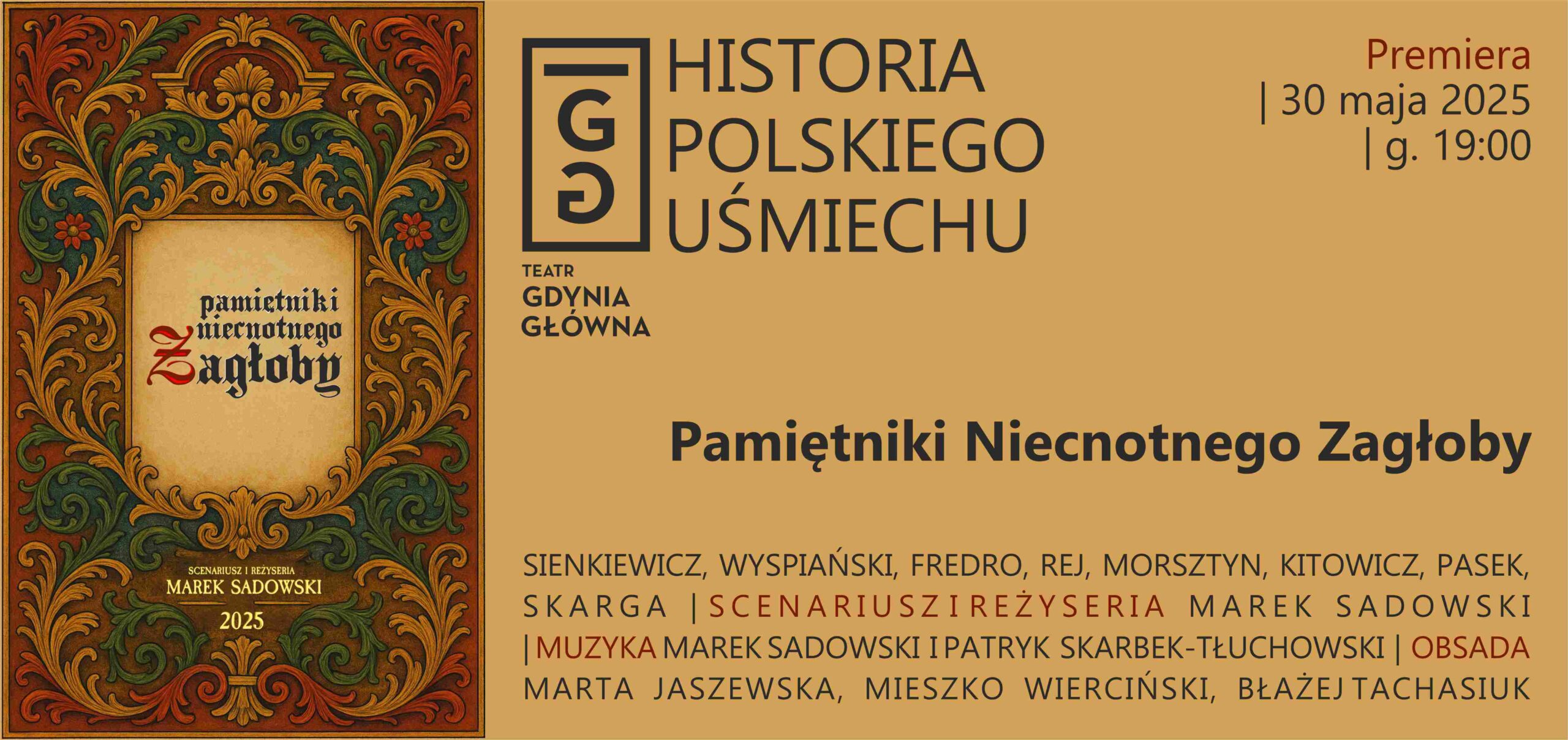 Spektakl z wykorzystaniem teksów: Sienkiewicza, Wyspiańskiego, Fredry, Morsztyna, Reja, Paska, Kitowicza i Skargi. Scenariusz i reżyseria – Marek Sadowski obsada: Marta Jaszewska, Błażej Tachasiuk, Mieszko Wierciński Muzyka: Marek Sadowski, Patryk Skarbek – Tłuchowski PREMIERA: 30 maja godz. 19:00  „Pamiętniki niecnotnego Zagłoby” to pełna uśmiechu teatralna bajaderka, odkrywająca komediowe aspekty twórczości klasycznych, polskich autorów; przeplatana współczesnymi […]
