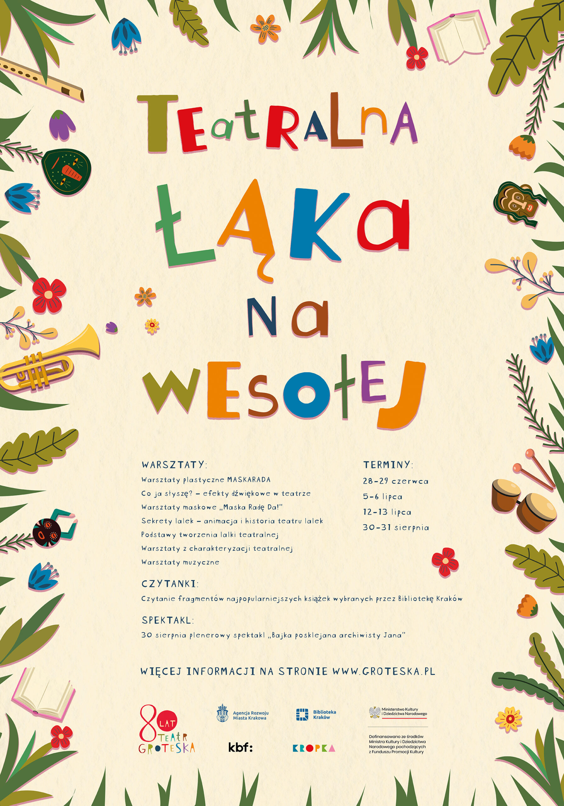 Więcej informacji o projekcie oraz zapisy na warsztaty: https://www.groteska.pl/spektakle/wydarzenia/teatralna-laka-na-wesolej-wakacyjny-projekt-teatru-groteska