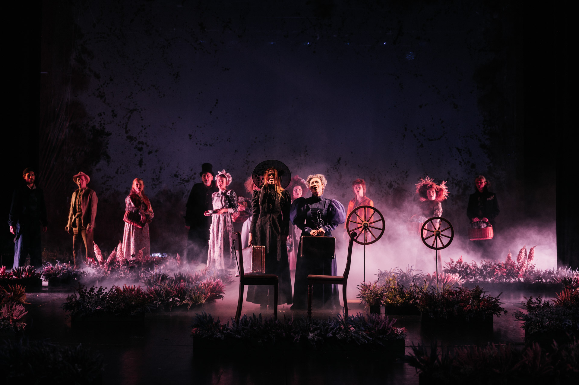 Olśniewającą oprawę plastyczną spektaklu stworzyły trzy utalentowane, niezwykłe panie. Za pomocą nieskomplikowanej scenografii autorstwa Martyny Kander (skrzynki z wrzosami i wysokimi trawami czy przesłonięcie horyzontu sceny zwiewnymi kotarami, co dało efekt okien mrocznego dworu) oraz reżyserii świateł Karoliny Gębskiej i historyzujących kostiumów Anny Adamek – powstał spójny, zachwycający obraz wrzosowiska i XIX-wiecznej Anglii, mieniący się ciepłymi, niezwykle przyjemnymi dla oka barwami .