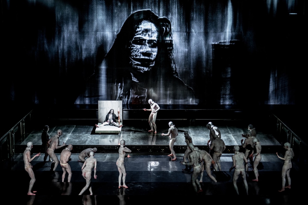 Spektakl otwiera utwór Laurie Anderson i w takim też eksperymentalno-postapokaliptycznym kolorycie utrzyma się cała muzyka ilustrująca Wyzwolenie, a wybrana przez Jana Klatę. Jego półnagi i bezbronny Reżyser (w tej roli kongenialny Marcin Miodek) niczym Potępieniec z tryptyku Sąd Ostateczny Hansa Memlinga (projekcje: Natan Berkowicz) spowolnionym, urywanym monologiem porażonej mowy nada na wstępie swą grą pełnię wymiarów, jaką posiada cały dramat Wyspiańskiego, tak oryginalnie zinterpretowany przez Jana Klatę. I konsekwentnie: w przebiegu dramatu każda z kolejnych (jakże podobnych wizualnie) postaci Wyzwolenia Klaty zadysponuje sekwencją, w której ona właśnie rozegra najwyższy sens widowiska. Mam tu na myśli fakt, że spektakl jest, jak zresztą miało to już miejsce u Wyspiańskiego, łańcuchem partii solowych i duetów, które składają się na postać Konrada i sens tej postaci.
