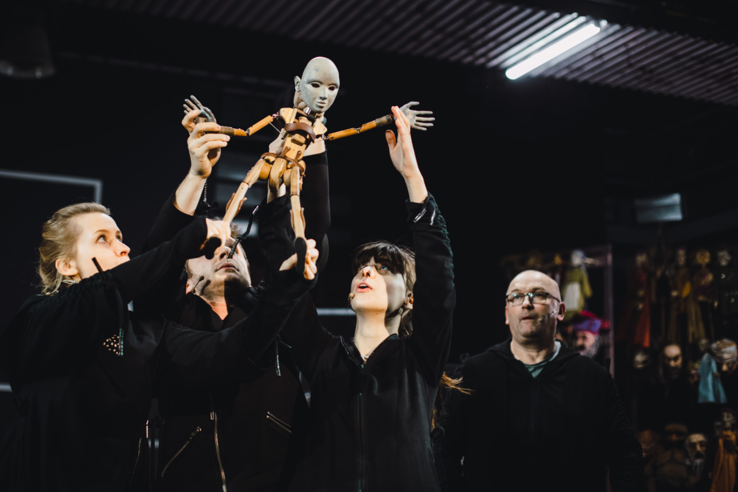 Traktowanie sceny jako sposobności do próbowania życia ma odbicie w formie i konwencji spektaklu. „Podwójne życie Weroniki” intryguje tajemniczością i złożonością kreowanego świata, a wszystko to za sprawą powołania trzech planów (wielopiętrowa konstrukcja teatru w teatrze) oraz kompozycji szkatułkowej. Widzowie poznają historię zaprezentowaną w tym samym czasie na trzy różne sposoby: poprzez retrospekcję reżysera, rozgrywany na jego oczach pokaz oraz lalkową, równoległą realizację tworzonego przedstawienia. Aktorzy z dużą lekkością lawirują między tymi poziomami, zacierając między nimi granice: nie wiadomo, co jest prawdą, a co nie; co wpisuje się w rolę, a co w realne przeżycia; które działania są wyłącznie sceniczną kreacją, a które autentycznym dramatem. Odbiorca, oglądając prezentację w reżyserii Rzączyńskiego, jest cały czas manipulowany i zwodzony: nie wie, gdzie kończy się animator, a gdzie zaczyna lalka; w którym miejscu rzeczywistość pozasceniczna miesza się ze sceniczną; gdzie teatr wkracza w życie. Dodatkowo, o czym wspominałem wcześniej, co chwilę wybija się go z pozycji widza, „zabrania” mu się wierzyć w to, co ogląda, dzięki czemu pytanie jednej z postaci – „czy ktoś mną kieruje?” – zyskuje pozasceniczny wymiar; zaczyna odnosić się do widza.