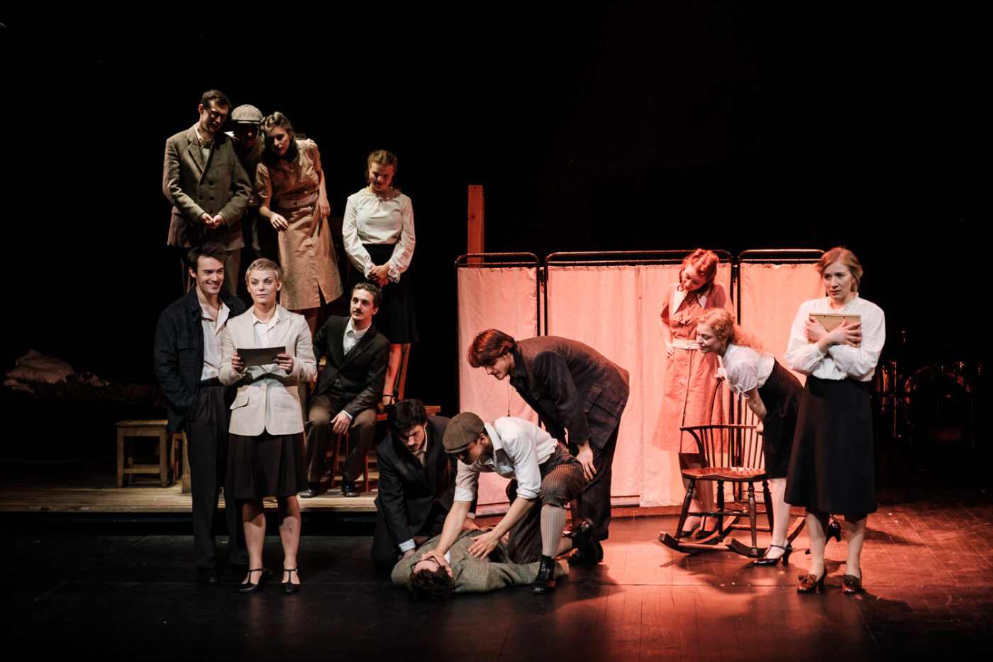 Powieść Mikołaja Łozińskiego „Stramer” to obyczajowa historia osnuta wokół życia żydowskiej rodziny w Tarnowie między pierwszą a drugą wojną światową. Wiele w niej emocjonalnych zawirowań związanych z przeżywaniem rodzicielskiej miłości i z nadzieją na lepszą egzystencję ich dzieci, narracyjnych przebiegów ukazujących z dużą dozą dynamiki cały chaos wielkich historycznych zawirowań. Styl i język tej ostatecznie przepełnionej optymizmem i zanurzonej w codzienności rodzinnej sagi, umiejętnie jednoczący humor z dramatyzmem, pozwala na bardzo szybkie wejście w rzeczywistość protagonistów i obserwowanie tego świata z perspektywy każdego z bohaterów – nieporadnego ojca powracającego z Ameryki, matki, która zdecydowała się poświęcić swoje marzenia na rzecz troski o dzieci i szóstki rodzeństwa, które zawsze może na opiekę rodzicielki liczyć i schronić się w domu pod jej tkliwymi skrzydłami. Jest w wykreowanym przez Łozińskiego galicyjskim świecie dużo nostalgii, ale pozbawionej taniego sentymentalizmu, jest chwytające za serce ciepło w ukazywaniu codziennych zdarzeń konfrontowanych z przeobrażeniami społeczno-politycznymi, które też determinują życie bohaterów. Być może dlatego zło, pozbawione tutaj objawów okrucieństwa, działa z tym większą mocą. Myślę, że te wszystkie atuty powieści Łozińskiego, skłoniły Marcina Hycnara do napisania adaptacji, która miała dać szansę w dyplomowym spektaklu na pokazanie możliwości warsztatowych młodych adeptów sztuki aktorskiej. W końcu to powinno być w takich przedstawieniach najważniejsze, a nie popisy inscenizacyjne reżysera. Dlaczego zatem tak się nie stało, co poszło nie tak?