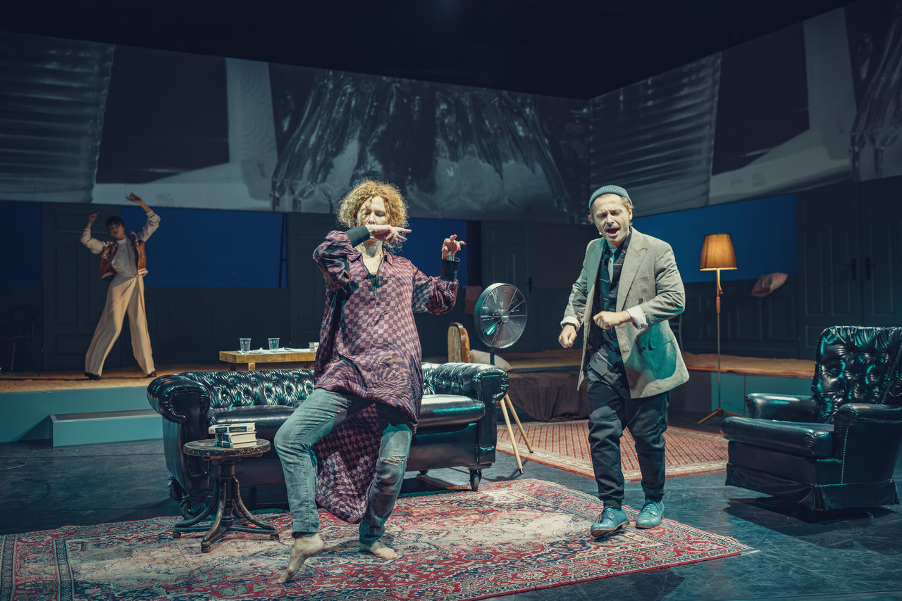 Przeciągający się do granic wytrzymałości „proces”, którego finalny efekt nie jest nikomu znany, to subtelna aluzja do jedynej w swoim rodzaju metody pracy Krystiana Lupy, która wymaga wyrzeczeń zarówno od aktorów, jak i widzów. Jak wiadomo, arcydzieła rodzą się w wielkich bólach i nie każdy jest gotów na takie poświęcenia (legendarne pośladki Joanny Szczepkowskiej). Przeciwwagą dla pogrążonych w letargu profesjonalistów są pełni wigoru i uroku nowohuccy amatorzy, tak ważni dla historii Łaźni Nowej. Przemykają bokiem sceny, by ukryć się za prowizorycznymi dwoma ścianami w głębi sceny (druga część scenografii Małgorzaty Szydłowskiej, już nie gustowna, a zwykła, prosta, bardziej ludzka). Na ekranie zamieszczonym u góry sceny widzimy, że to właśnie tam, na zapleczu, dzieje się „żywy” teatr, są ciekawe rozmowy, uśmiechy, wszyscy słuchają się nawzajem z uwagą.