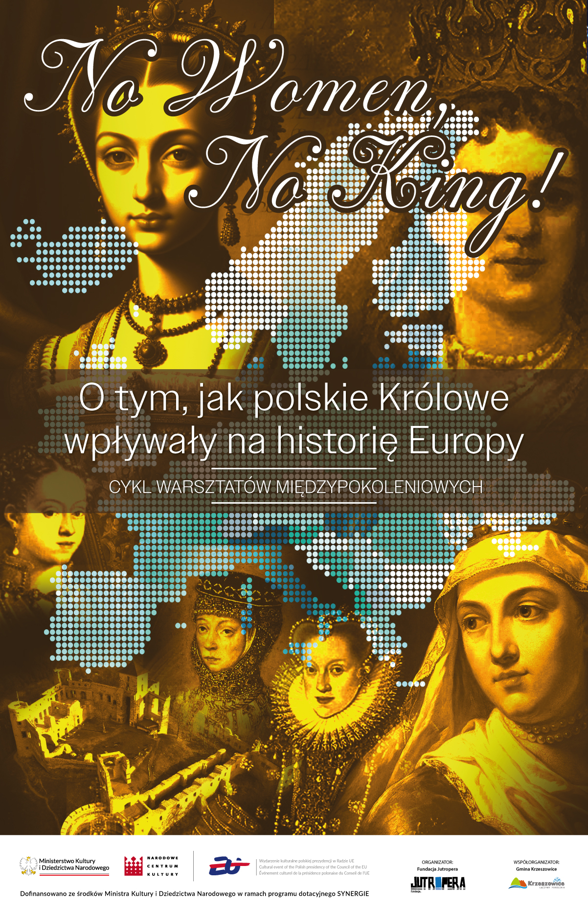 Małopolska, to ziemia na której historia Polski pisała się przez wieki. Dzisiaj, świętując polską prezydencję w Radzie Unii Europejskiej, przypominamy królewskie historie regionalne, widziane przez pryzmat kobiet -Królowych- i wplatamy je w działania warsztatowe, które zwieńczy spektakl teatralno-operowy. Myśląc o historii Polski, koronacjach (a warto wspomnieć, że w 2025 przypada 1000. lecie pierwszej polskiej koronacji), przede wszystkim przychodzą nam na myśl postaci wielkich władców, Królów Polski. Te historie są powszechnie znane, zdecydowanie mniej wiemy o kobietach, Królowych, które sprawowały władze, były żonami wielkich Monarchów. Często to one stały właśnie za sukcesami czy decyzjami Królów. Temat ten jest bardzo ciekawy, a zgłębiając go, dowiemy się jak wiele legend i historii kryje się na ziemiach Małopolski. To nie tylko powszechnie znane postaci jak Królowa Bona czy Jadwiga Andegaweńska. Budując projekt animujący mieszkańców i lokalne społeczności, przypomnimy takie kobiece osobowości jak Zofia Holszańska, Elżbieta Rakuszanka, Anna Jagiellonka, Ludwika Maria Gonzaga i inne. Temat projektu pokazujemy z pozycji narodowej Polski, ale naświetlony perspektywą europejską. Nie ma naszych historii bez kontekstu europejskiego, przenikania się wpływów, tranzycji, crossowania, podróży… Historie Monarchiń prezentować będziemy z użyciem narzędzi jakie daje nam teatr i opera. Zbudowanie sieci połączeń, za sprawą wspólnej historii pozwoli nam rozwijać realny wymiar solidaryzmu społecznego i wspólnoty, jak i umacniania pozycji obywateli i obywatelek Europy.