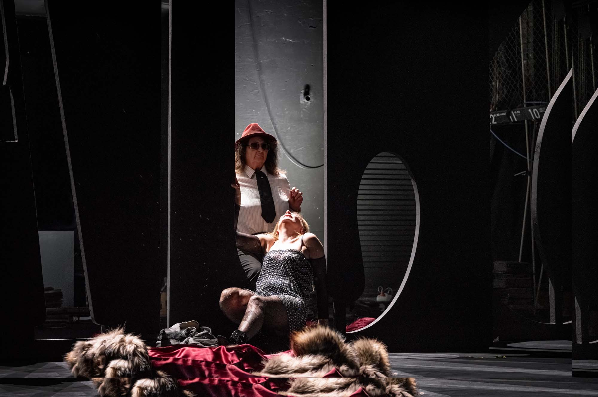 „SEKS, HAJS i GŁÓD…” ma klasyczną trójaktową strukturę, wyraźnie podzieloną zarówno pod względem dramaturgicznym (każda sekwencja opowiada osobne historie, które łączą się poprzez tożsamość postaci lub ich powiązania), jak i scenograficznym. Każdy z aktów rozgrywa się na tle ogromnego napisu, który przecina scenę, stanowiąc myśl przewodnią danej części opowieści. Niektórzy mogą uznać tę dosłowność za banalną, jednak jest ona zrównoważona literacką głębią, zaczerpniętą z monumentalnego dzieła Zoli. Ta opowieść zachowuje swoją moc dzięki minimalizmowi – brak tu nadmiaru efektów wizualnych, a dominują jedynie światło, fizyczne rekwizyty oraz estetycznie spójne kostiumy (w odcieniach czerni, szarości i pastelowego brązu, z wyjątkiem stroju Nany w akcie II). Nie ma tu wizualizacji wideo ani rozbłysków neonowych świateł. Taka oszczędność formy, w dzisiejszym świecie pełnym nadmiaru bodźców, może wydawać się nudna, wręcz usypiająca, ale to właśnie dzięki tej rezygnacji przekaz o XIX-wiecznym świecie staje się bardziej dobitny.