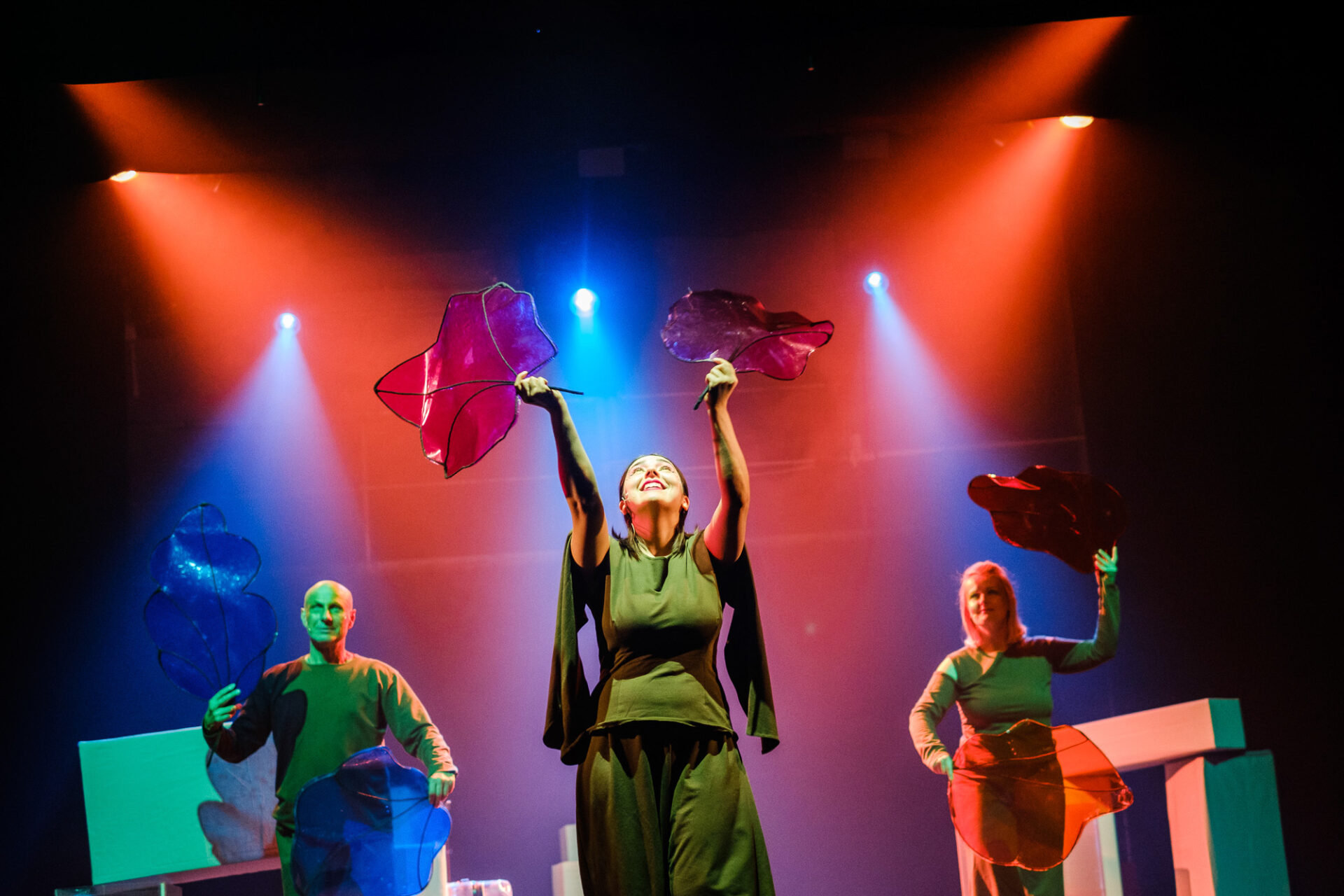 Obydwa przedstawienia traktują o wojnie, o ranach jakie zadaje i o tym, jak w kontekście tego okrutnego zagrożenia funkcjonuje ludzka pamięć, tyle że każde z innej perspektywy. W „Borderline” słuchamy opowieści czterech młodych kobiet (Valeriya Kosmidis,  Rozaliia Kucherova, Hanna Novak, Khrystyna Velychko), które próbują odnaleźć się w nowej rzeczywistości  po najeździe Rosjan na ich kraj, natomiast w spektaklu wyreżyserowanym przez Anitę Piotrowską w ramach 12. Festiwalu Muzyki Współczesnej Dla Dzieci „Mała Warszawska Jesień” i 65. Festiwalu Muzyki Współczesnej „Warszawska Jesień” w Guliwerze oglądamy świat oczami dzieci, które próbują odbudować to, co straciły i za czym tęsknią. Scenariusz Mariusza Gołosza, zainspirowany obrazkową książką Romany Romanyszyn i Andrija Łesiwa,  opowiada historię trójki dzieci (Danek – Damian Kamiński, Fabian – Błażej Twarowski i Gwiazdka – Anna Przygoda), które dążą do  przywrócenia swojemu miastu światła, spokoju, harmonii, czystego powietrza  i szczęścia, a zatem tych atrybutów, które towarzyszyły im w życiu przed nastaniem ciemności. Aktorzy bardzo dobrze oddają zróżnicowane charaktery swoich postaci, ich różne wrażliwości i empatię, jaka ich nie opuszcza. Młodzi protagoniści, pragnąc powrócić do pełnej miłości krainy dzieciństwa, przypominają sobie piękne, najbardziej radosne chwile, które wspólnie przeżywały rozkoszując się chociażby wonią kwiatów, które wokół rozkwitały czy koncertami w oranżerii. Ta perspektywa artykułowana jest od początku w spektaklu, a  zatem od momentu kiedy pojawia się w nim Róża, grana przez wcześniej wspomnianą Mariię Senko, a później Malwa (Honorata Zajączkowska) i Modrzyk (Jacek Poniński). Jej próby odnalezienia się pośród innych roślin będą towarzyszyły przygodom pozostałych bohaterów, którzy za wszelką cenę próbują „wypędzić” z miasta złowieszczą chmurę i chwasty, które przesłoniły słońce. Nadzieja, jaka im towarzyszy w walce z ciemnością sprawi, że ich ukochane miejsca powoli zaczną się odradzać, a oni sami będą mogli wrócić do dawnych zabaw i podziwiania piękna. „Wojna…”, dobrze, że nie pozbawiona elementów baśniowych, jest znakomitym tworzywem do rozmów rodziców z dziećmi na temat przemocy, bólu, wojny nie mającej serca  i objaśniania okrucieństw, które nigdy nie powinny się zdarzyć. Wracając po spektaklu ulicą Różaną z satysfakcją słuchałem jak wspaniałe, mądre rozmowy prowadzili rodzice ze swoimi pociechami i to wcale nie z pozycji wymagającego odwagi bogoojczyźnianego patriotyzmu.