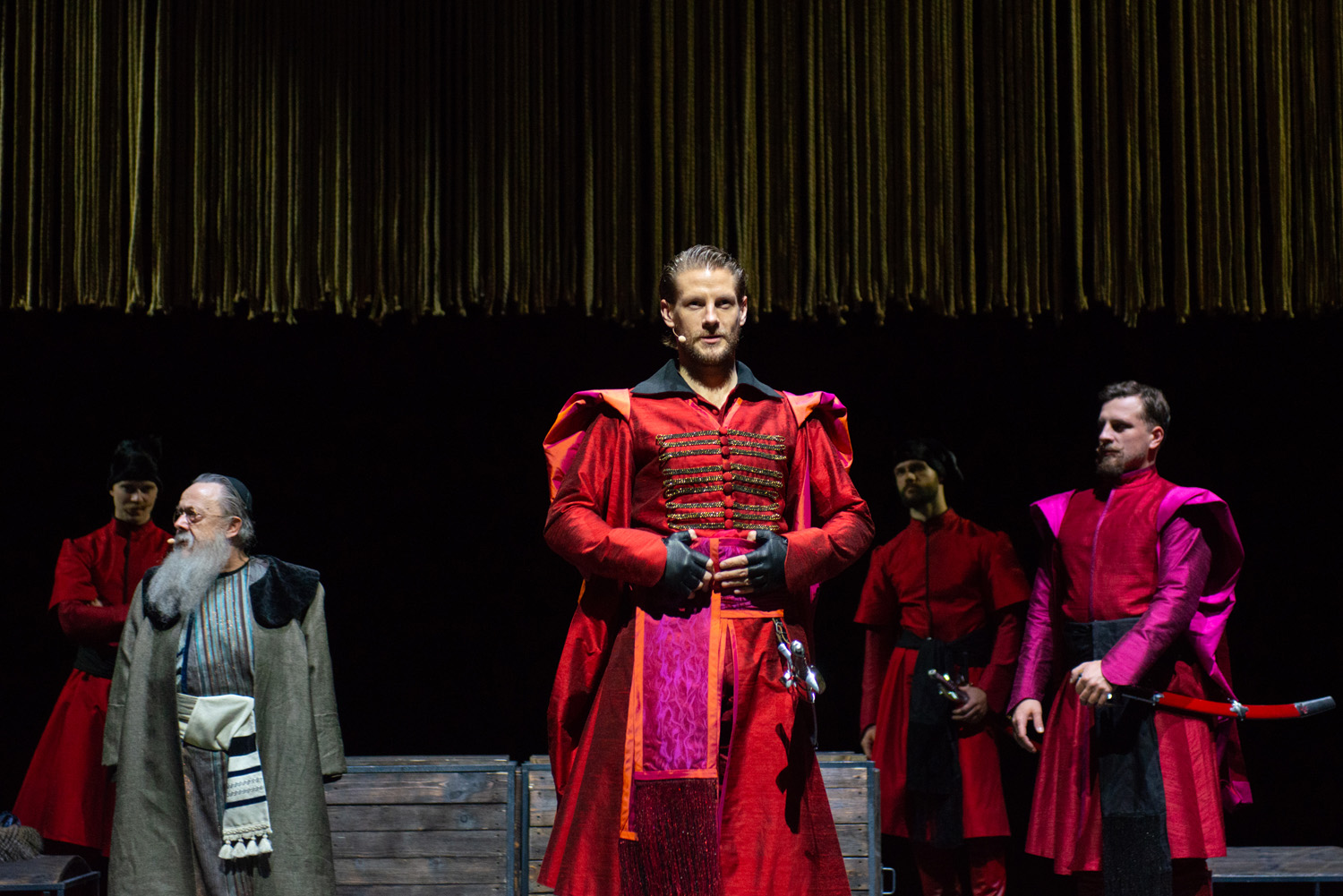 W niektórych scenach spektaklu obserwujemy równocześnie dwa plany, ukazujące różne wątki, co dodatkowo wzmacnia napięcie i złożoność sytuacji, oraz wzbogaca wizualnie przedstawienie. Sanitariusze poruszający się w tle, przykrywający trupy ofiar dżumy – zarazy dokonującej spustoszenia wśród żołnierzy i mieszkańców miasteczka – wyglądali niczym duchy. Pomiędzy nimi i na pierwszym planie przewijały się złowieszczo wyglądające postaci przypominające XVII-wiecznych lekarzy dżumy, z kapeluszami i maskami ptaków na twarzach. Ta scena była bardzo mistyczna i poruszająca.