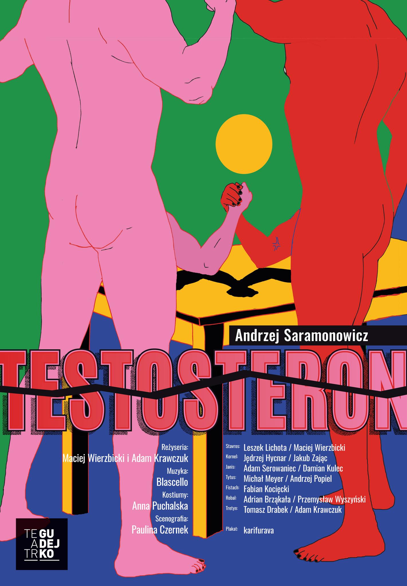 „Testosteron” Andrzeja Saramonowicza to teatralny hit wystawiany wielokrotnie w teatrach w całej Polsce. Dotychczas to chyba najbardziej popularna polska farsa XXI wieku. Premiera Teatru Gudejko (założonego przy agencji aktorskiej Gudejko w 1989 roku) odbyła się gościnnie w warszawskim Teatrze Komedia.
