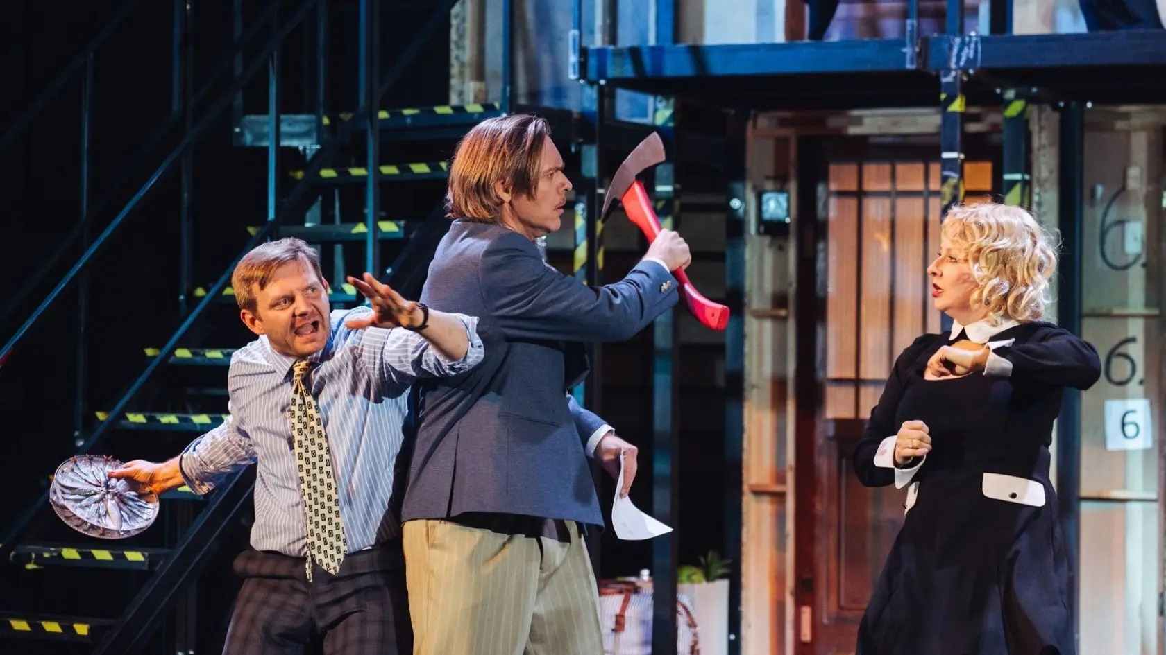 „To świat małych spraw, drobnych, upierdliwych dramatów. I to są właśnie sprawy ludzi. Dlatego nie śmiejemy się z bohaterów, my im współczujemy. Ale ich katastrofy są tak naprawdę wyzwalające, oni triumfują. Ta sztuka, oprócz tego, że bardzo dobrze napisana i śmieszna, jest po prostu «pojednująca»” – twierdzi reżyser. Sprawdzone już na scenie tłumaczenie tekstu autorstwa Karola Jakubowicza i Małgorzaty Semil na pewno pomaga realizatorom, a w spektaklu nie brak typowych dla farsy i innych komedii gagów: nieotwierających się drzwi, szejka odzianego w prześcieradło, siadania na kaktusie, pomylonych bukietów i znikających pakunków oraz sukienek, urwanych klamek i innych. Scenografia Wojciecha Stefaniaka zmyślnie podkreśla dwuznaczności, wykorzystuje atuty sceny i konstrukcji dramaturgicznej, podobnie jak kostiumy Alicji Antoszczyk i muzyka Pawła Czepułkowskiego.